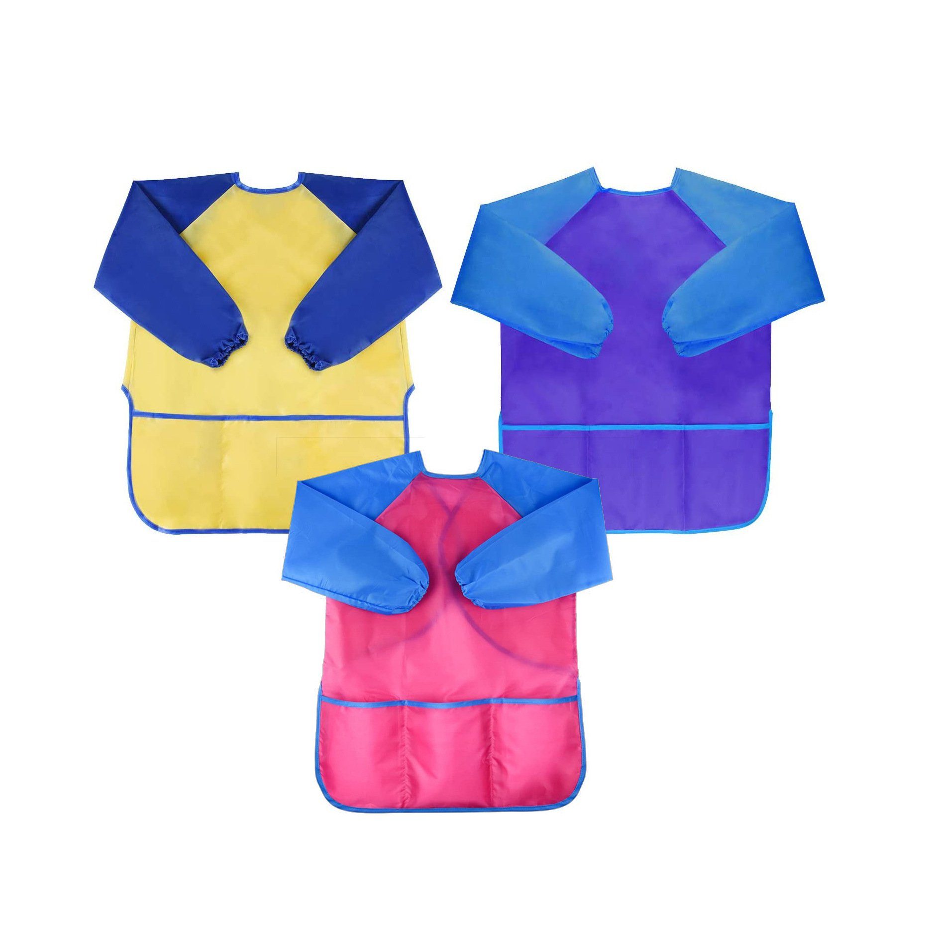 2.Lange Ärmel: Langarm kinder schürze mit elastischem Stulpendesign bieten einen besseren Schutz vor Farbe / Schmutz für Kleidung und Arme Ihres Kindes. Darüber hinaus bietet die geräumige Fronttasche Platz für Malwerkzeuge oder andere Gegenstände, was sehr praktisch ist.