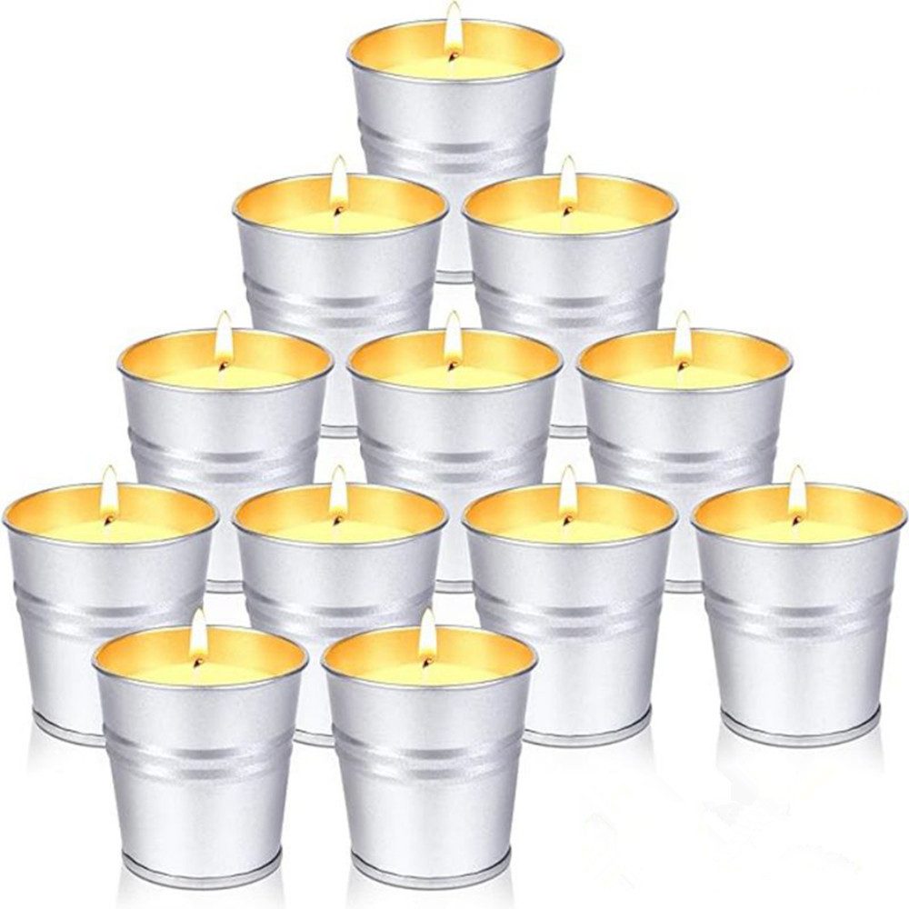 Teelichter im Metalleimer- - Es gibt insgesamt 12 Kerzen, jede ist kleiner in der Größe, aber das ist ein Vorteil, da Sie mehrere citronella kerzen an mehreren Orten stellen können, anstatt eine große kerze outdoor an einem Ort zu stellen.