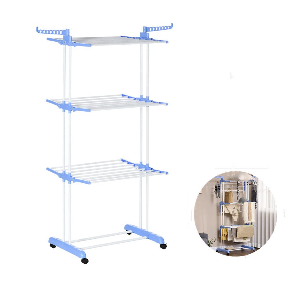 Wäscheständer mit 4 Ebenen: Dieser freistehende Wäscheständer verfügt über 4 Ebenen zum Trocknen von Handtüchern, Hemden, Socken, Hüten, Mänteln, Kleidern, Schuhen, usw. Die beiden schwenkbaren Kleiderhaken sind mit je 7 Ösen für Kleiderbügel ausgestattet, um Ihnen mehr Aufhängefläche zu bieten