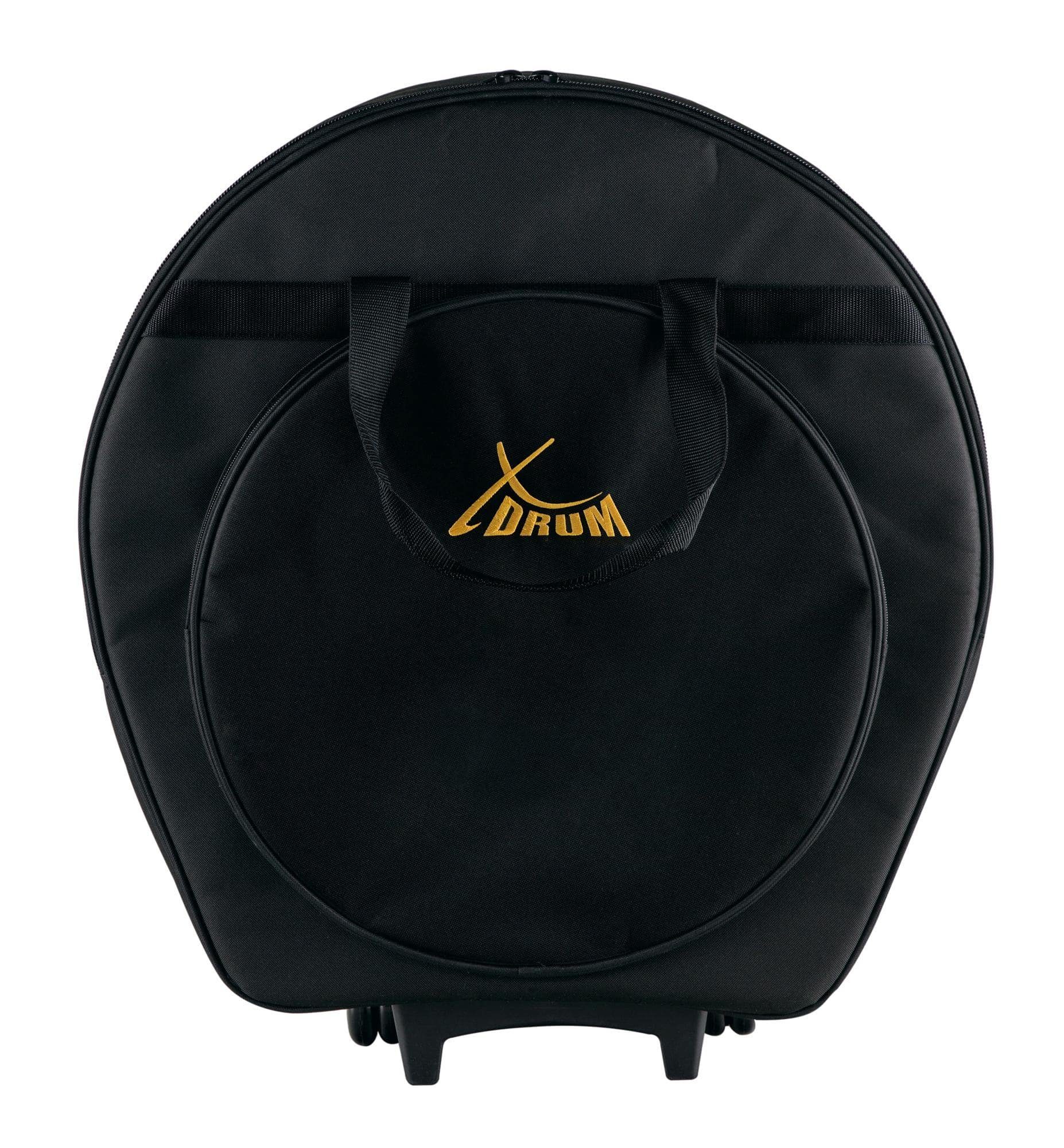 Auch optisch ist der XDrum Beckentrolley ein Highlight. Die Tasche ist aus edlem, schwarzem, wasserabweisendem Stoff gefertigt und mit dem orangen XDrum Logo bestickt.