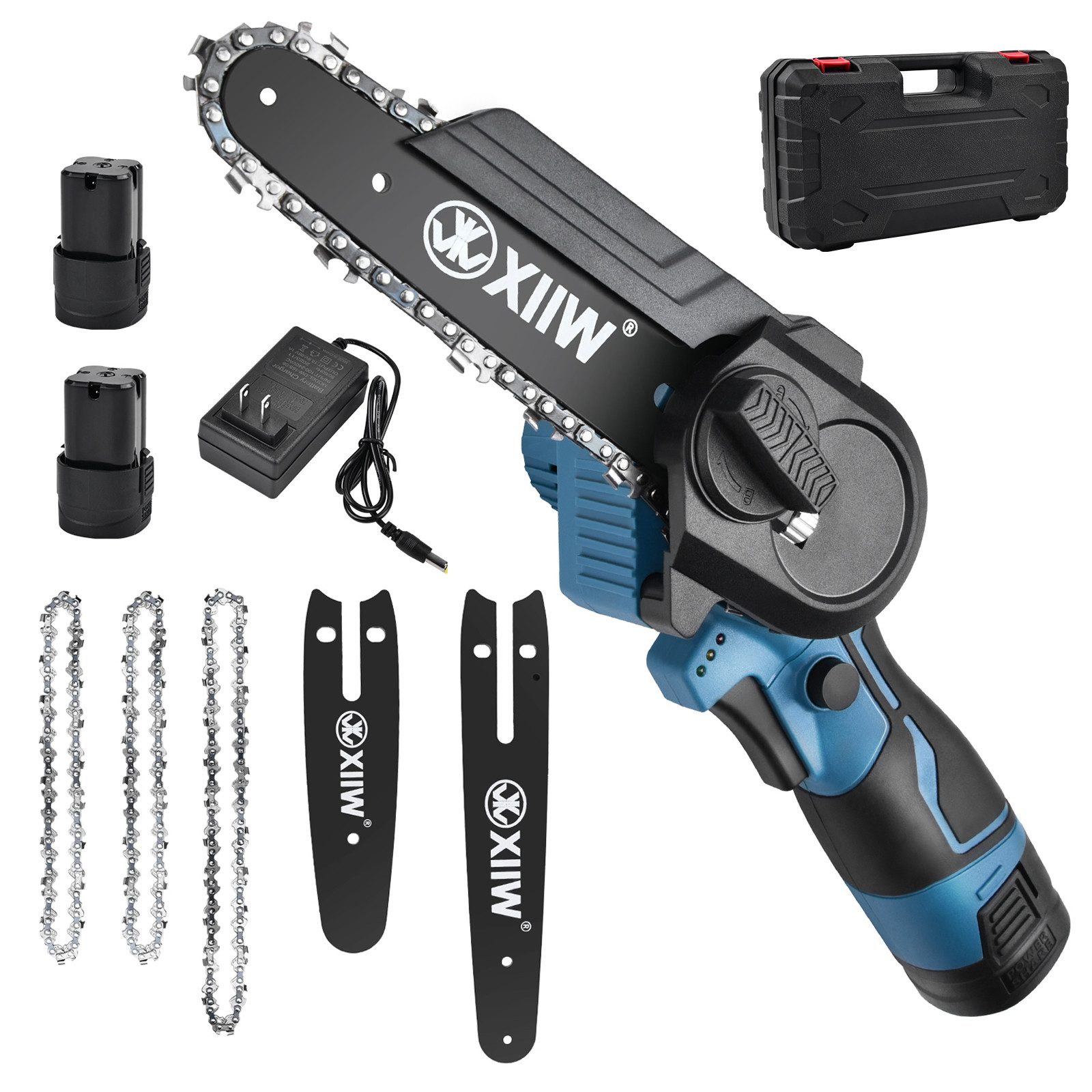 1 x kettensäge, 2 x 1.5Ah Akku, 1 x Aufbewahrungsbox, 2 x 4-Zoll-Kette, 1 x 6-Zoll-Kette, 1 x 4-Zoll-Führungsschiene,