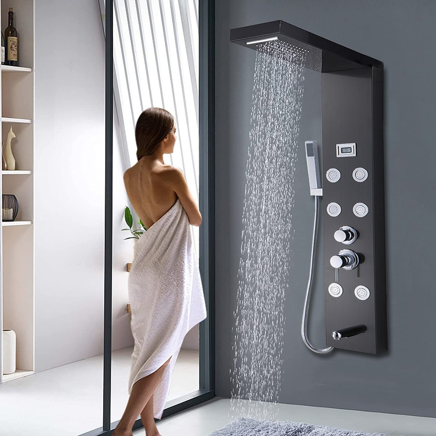 Die Oberfläche des Duschpaneels ist mit einer Nano-Schutzschicht versehen, die Fingerabdrücke und Flecken reduziert, die Reinigung und Pflege erleichtert und die Oberfläche somit schön hält.