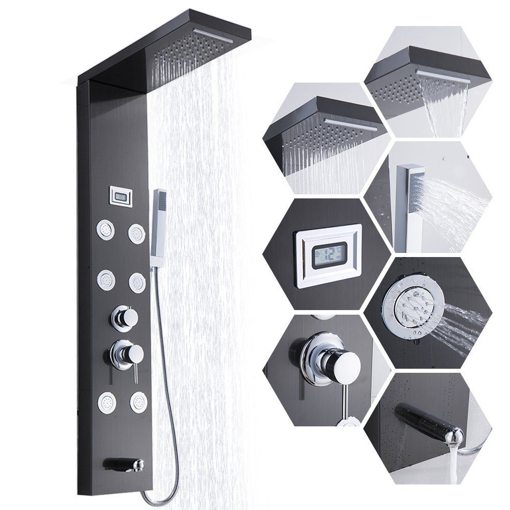Die Oberfläche des Duschpaneels besteht aus gebürstetem Edelstahl mit einer stilvollen Optik. Das Material ist äußerst korrosionsbeständig und sein metallischer Glanz bleibt für eine lange Zeit erhalten.