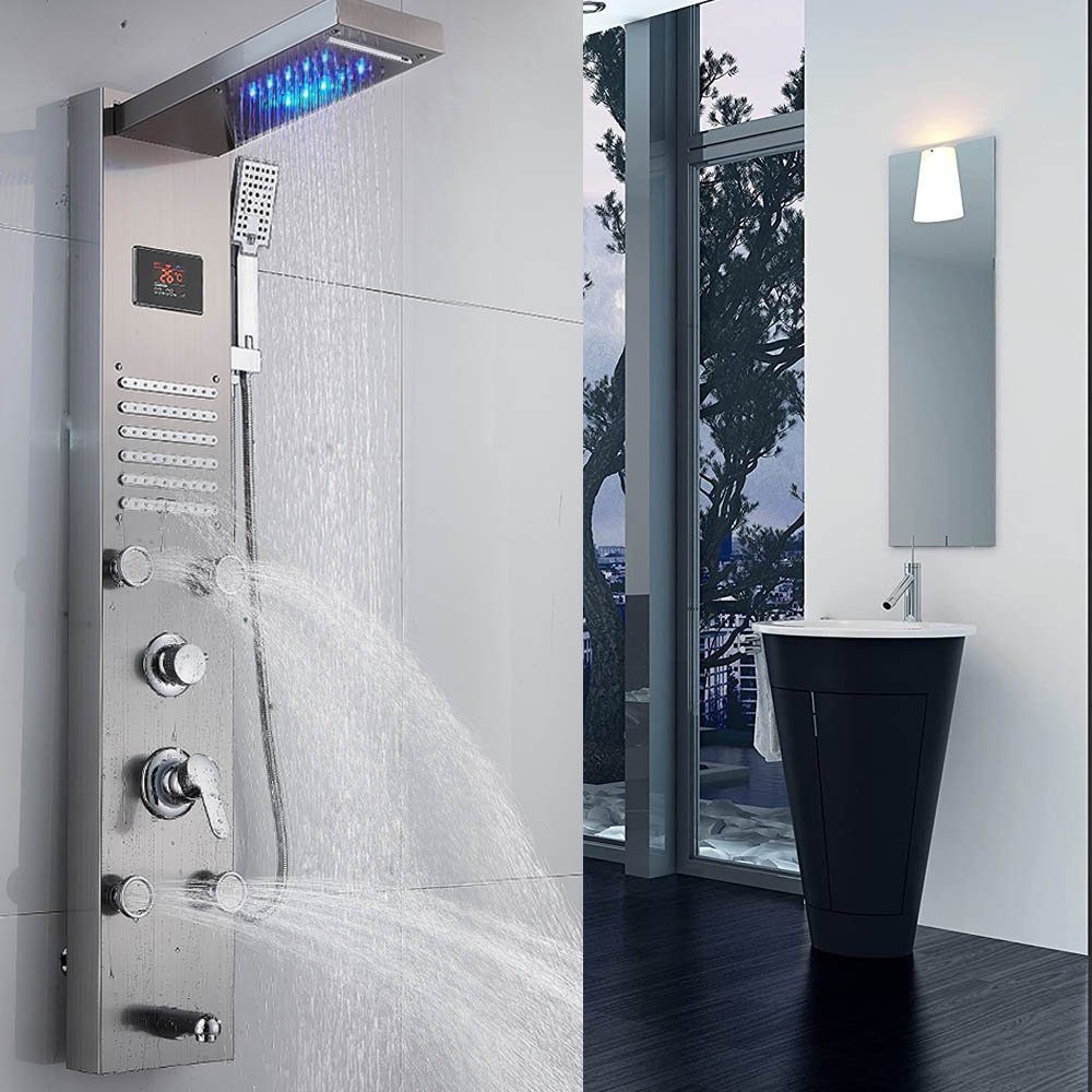 Die Oberfläche des Duschpaneels besteht aus gebürstetem Edelstahl mit einer stilvollen Optik. Das Material ist äußerst korrosionsbeständig und sein metallischer Glanz bleibt für eine lange Zeit erhalten.