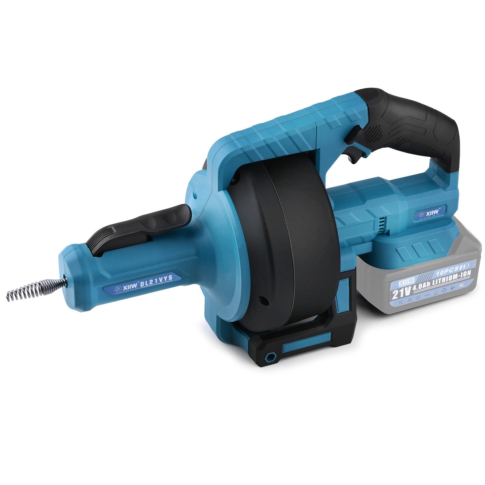 Die Rohrreinigungswelle verfügt über 9mm Durchmesser und einen 13mm Bohrkopf am Ende, eignet sich für Rohrdurchmesser ab 16-55mm.