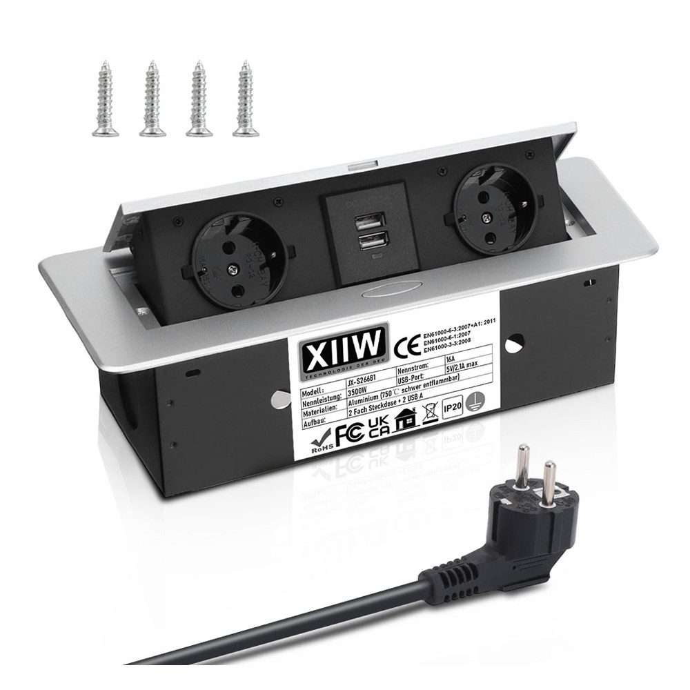 Die Pop-up-Steckdosenleiste besteht aus Aluminiumlegierungs material, sehr poliert, professionelles Aussehen. Langsam bei 45 Grad mit gedämpfter Federstruktur aufklappen, bei Gebrauch aufklappen, bei Nichtgebrauch in der Box verstecken. Всеs in einer Steckdosen, um Ihre tägliche Geräteladung zu decken, sehr bequem auf Ihrem Schreibtisch zu verwenden.