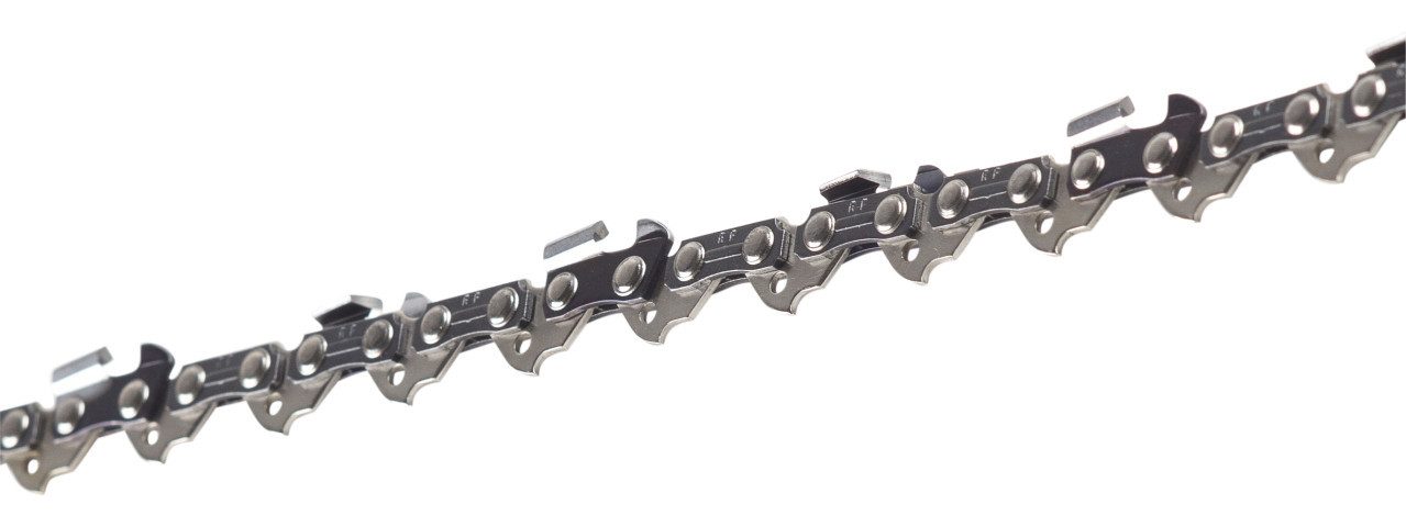 Sägekette mit 3/8 (9,52 mm) Kettenteilung, Treibgliedstärke: 1,3 mm (0,050), Treibgliedanzahl: 40. Halbmeißel-Kette mit abgerundeten Schneidzähnen, mit Sicherheitsglied, für eine niedrigere Rückschlagsneigung. Bitte beachten Sie unbedingt die Montage- und Sicherheitshinweise des Geräteherstellers!Ratioparts Sägeketten erfüllen höchste Qualitätsansprüche und zeichnen sich durch modernste Применитьungstechniken unter Verwendung bester Rohstoffe aus.- Spezielles Stanzverfahren der Nietlöcher (kaum Materialverschleiß) - Gehärteter Nietflansch (wesentlich höhere Lebensdauer) - Besonders hoher Chromanteil (deutlich höhere Standzeit und Schnittfestigkeit) - Длинаres Zahndach (ausgezeichnete Haltbarkeit und Standfestigkeit)