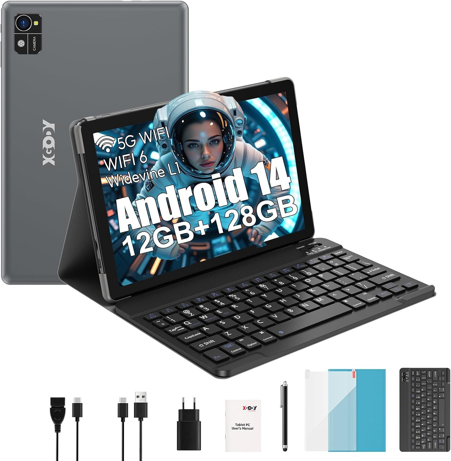 10 Zoll Android 14 Tablet mit Tastatur 2,4G/5G WLAN 2,0 GHz | 12 GB RAM + 128 GB ROM (TF 1 TB) | FHD | 5+13 MP Kamera | 7000 mAh | Bluetooth 5.0,Tablet PC