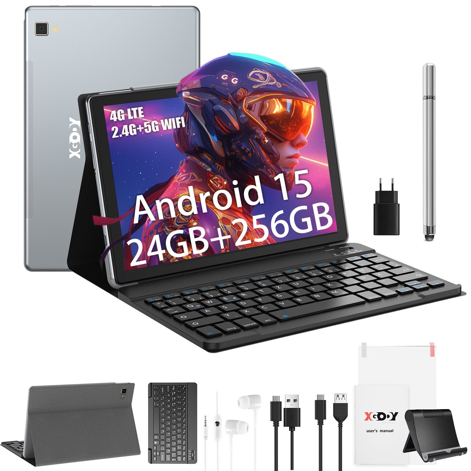 10,1 Zoll 4G LTE(2 SIM Slot) Octa-Core Android 15 Tablet 24GB RAM 256GB ROM Tablet mit Tastatur 8000mAh Akku 1920x1200 FHD+IPS Touchscreen 5MP+13MP Kamera Bluetooth 5.0 Typ C Tablet