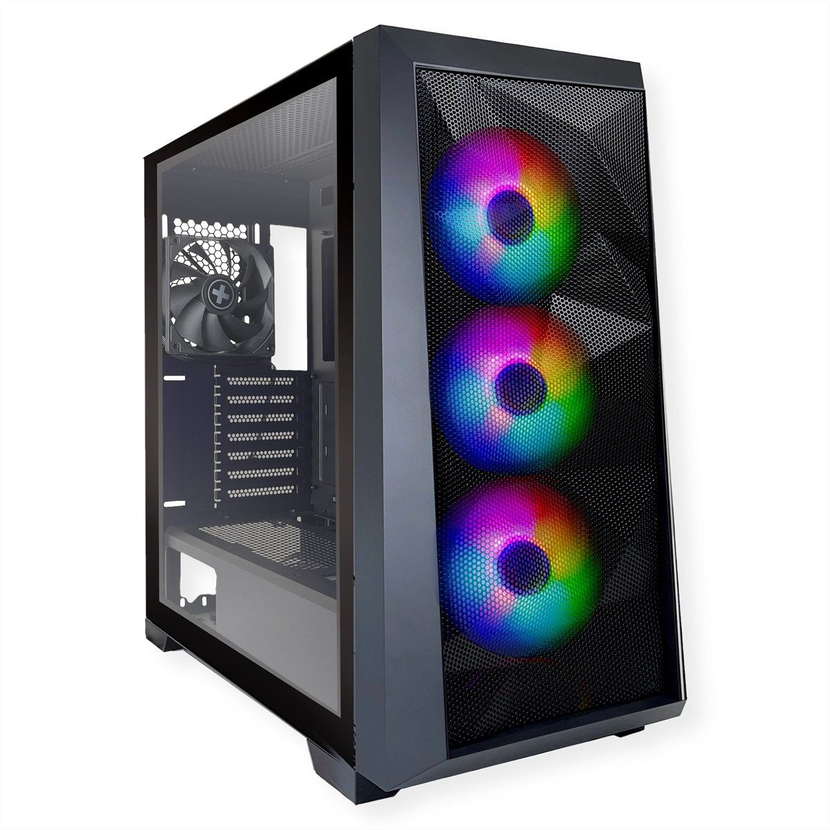 Das Gehäuse bietet vielzählige Möglichkeiten das Interieur individuell und problemlos einzurichten. Zusätzlich hat man durch das gehärtete Glas-Seitenteil eine glasklare Sicht auf die verbauten Komponenten. Durch die drei ARGB-Lüfter am Front- Panel und die Full Diamond Mesh Front überzeugt es nicht nur optisch, sondern beweist sich als wahres Performance Monster!