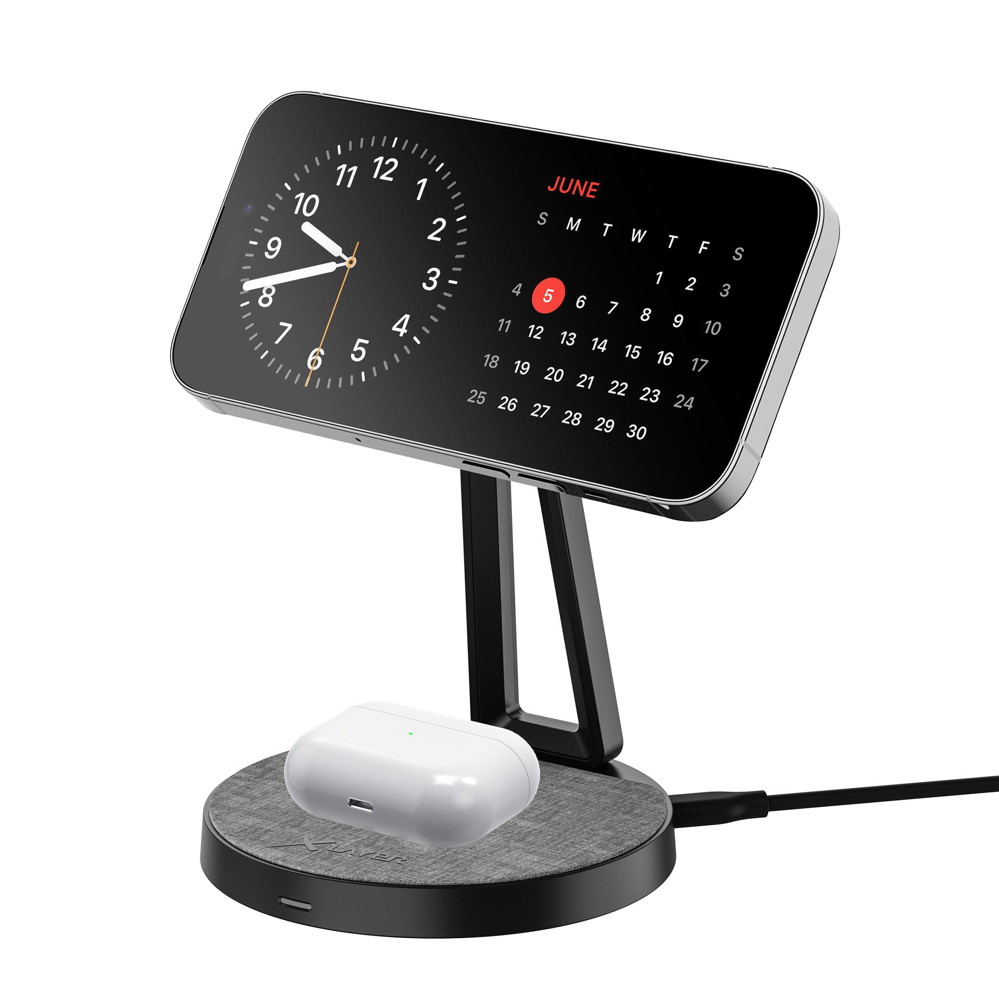 Eigenschaften | 15W kabelloses Laden 2-in-1 Design für iPhone und AirPods Grau/Weiß Farboption Kompatibel mit Qi-fähigen Geräten Effiziente Energieübertragung |