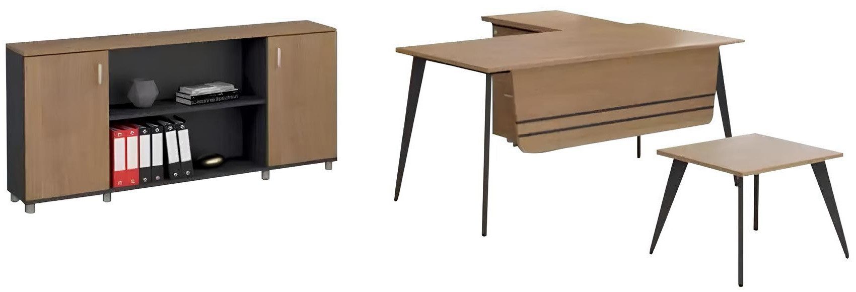 Serie | Eckschreibtisch, Couchtisch, Schrank. |