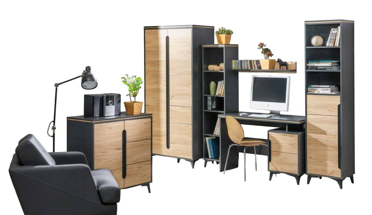Serie | Schreibtisch + Wandregal + 2x Regale + Kommode + Schrank |