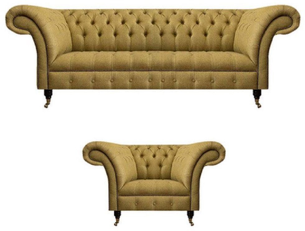 Xlmoebel Chesterfield-Sofa Gelbes Chesterfield-Sofa-Set für das Wohnzimmer - Drei-Sitzer-Sofa, Hergestellt in Europa
