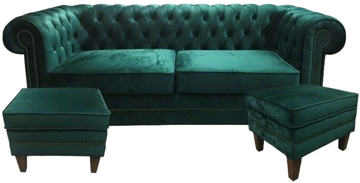 Serie | Chesterfield 3-Sitzer +2 x Hocker Grün |