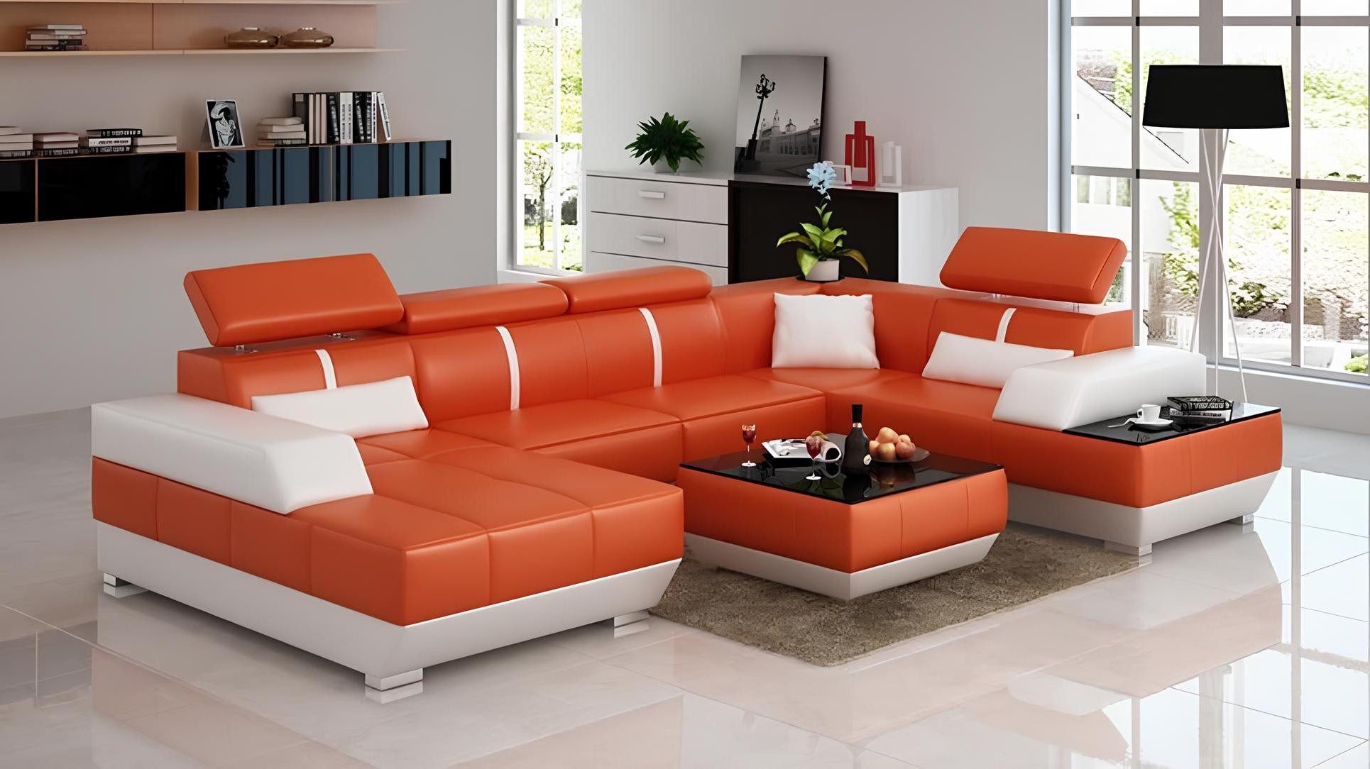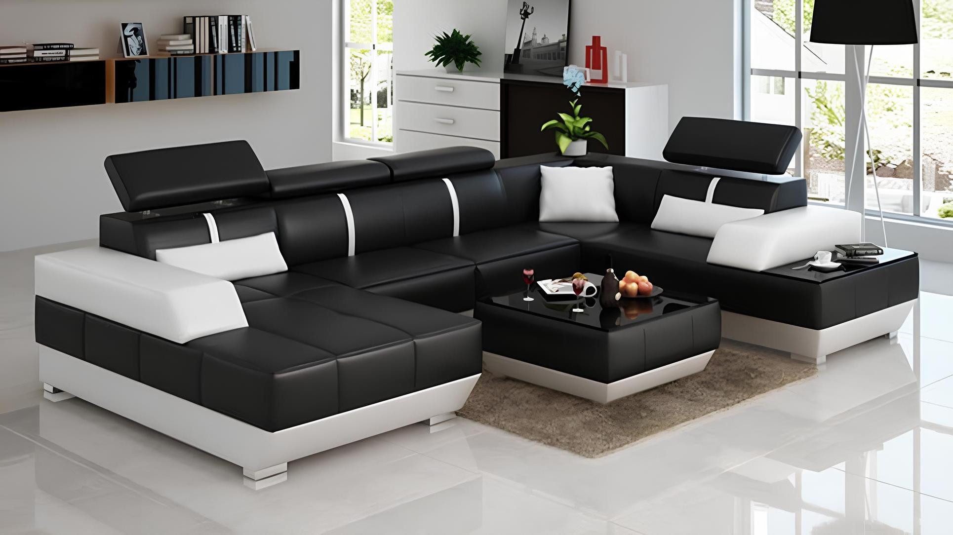 Ecksofa Ledersofa Couch Polstergarnitur Modernes Wohnzimmer Sofa