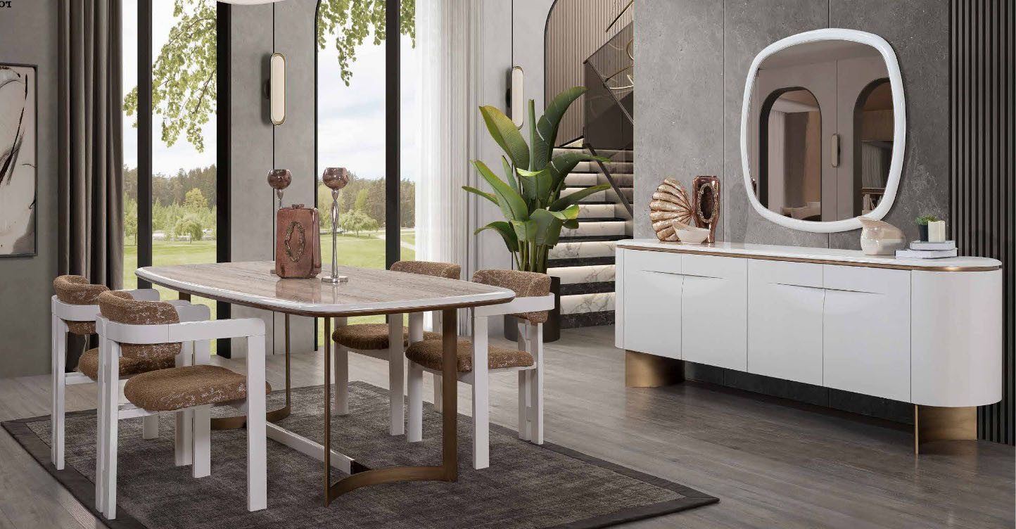 Serie | 7tlg Esszimmer Set(Esstisch+4x Stühle+Kommode+ Spiegel) |