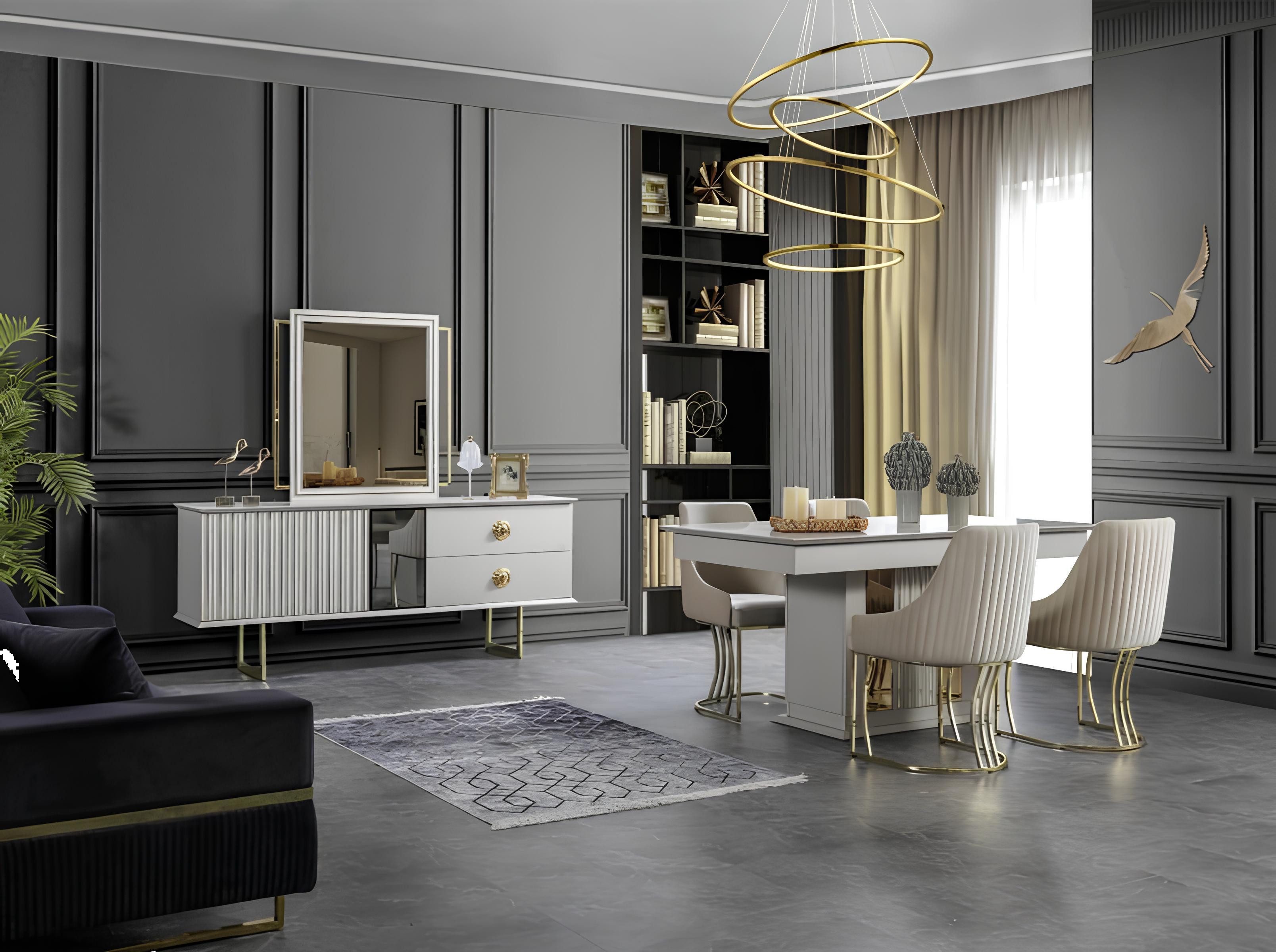 Serie | 6tlg.Esszimmer Set(Esstisch+4x Stühle+Sideboard) |