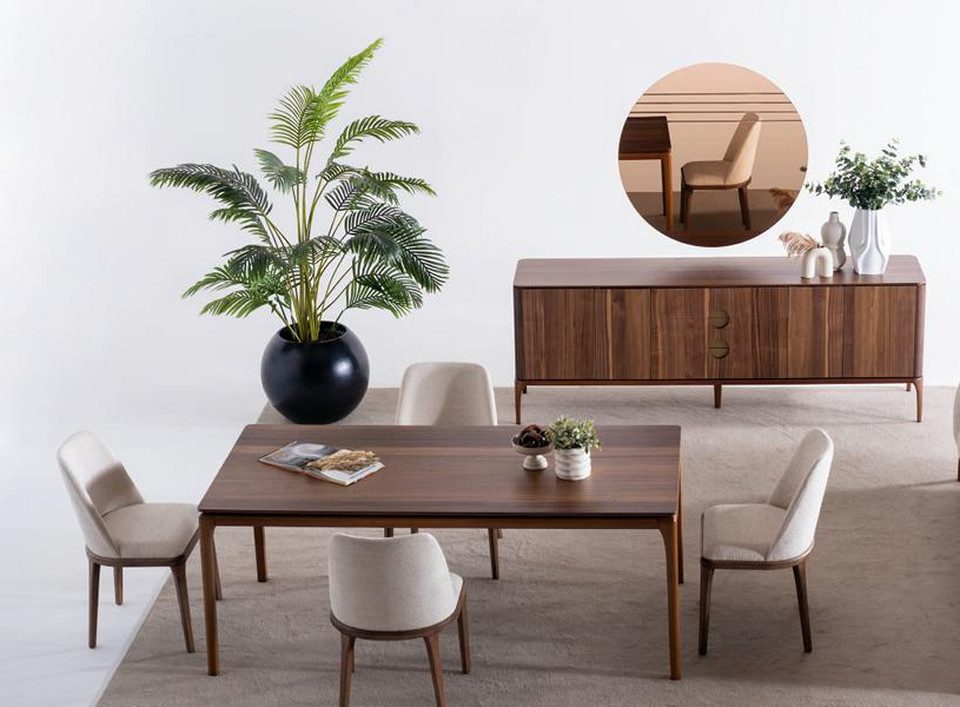 Serie | 7tlg. Esszimmer Set(Esstisch+4x Stühle+Kommode mit Spiegel) |