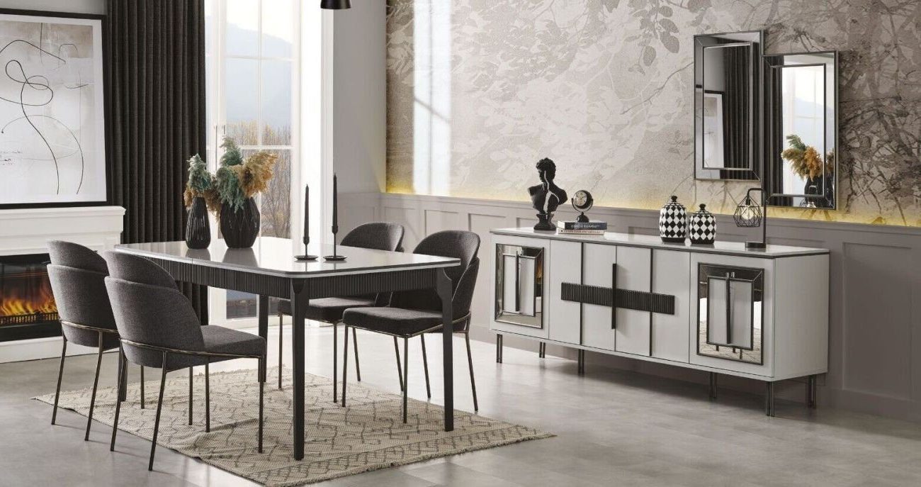 Serie | 8tlg. Esszimmer set(Esstisch+4xStuhl+Sideboard mit Spiegel) |
