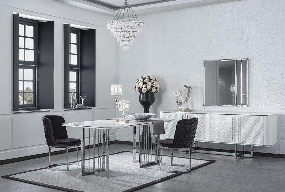 Serie | Esszimmer Set 7tlg (Esstisch + 4x Stühle + Sideboard mit Spiegel) |
