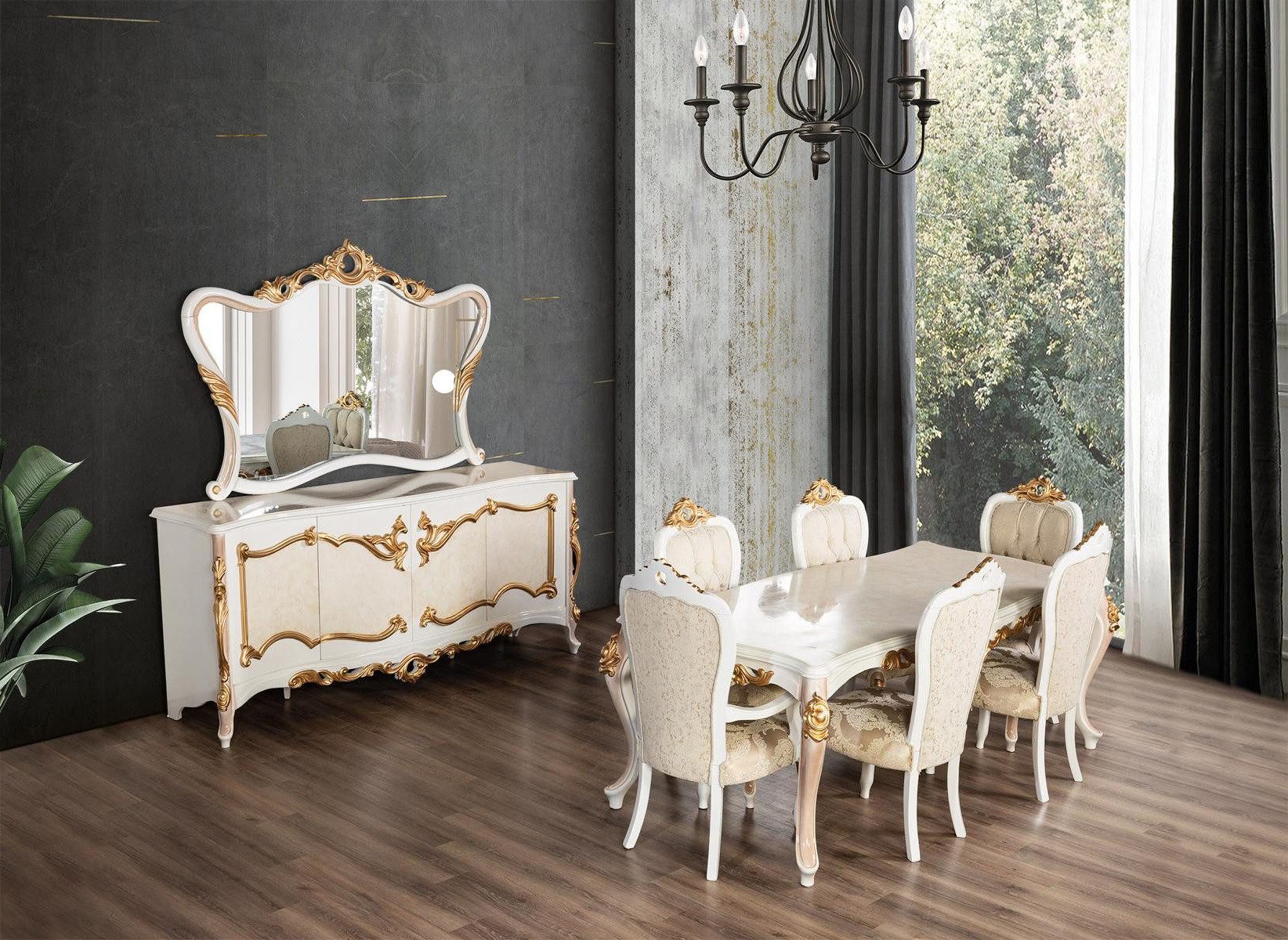 Serie | 7 tlg. Esszimmer Set (Esstisch + 4x Stühle + 2x Stühle mit Armlehnen) |