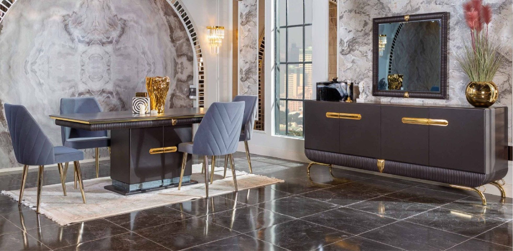 Serie | 7tlg.Esszimmer Set(Esstisch + 4x Stühle + Kommode + Spiegel) |