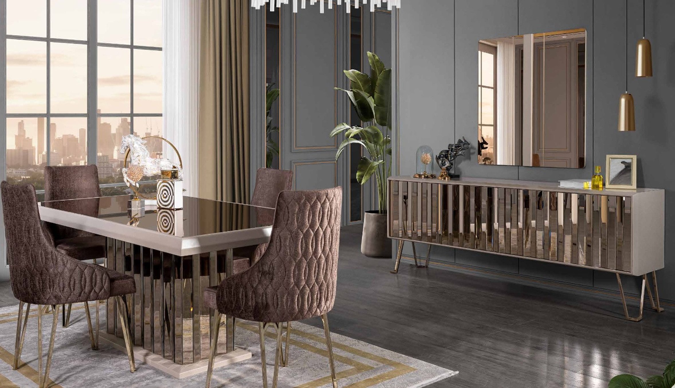 Serie | 7tlg Esszimmer Set(Esstisch+4x Stühle+Kommode+ Spiegel) |