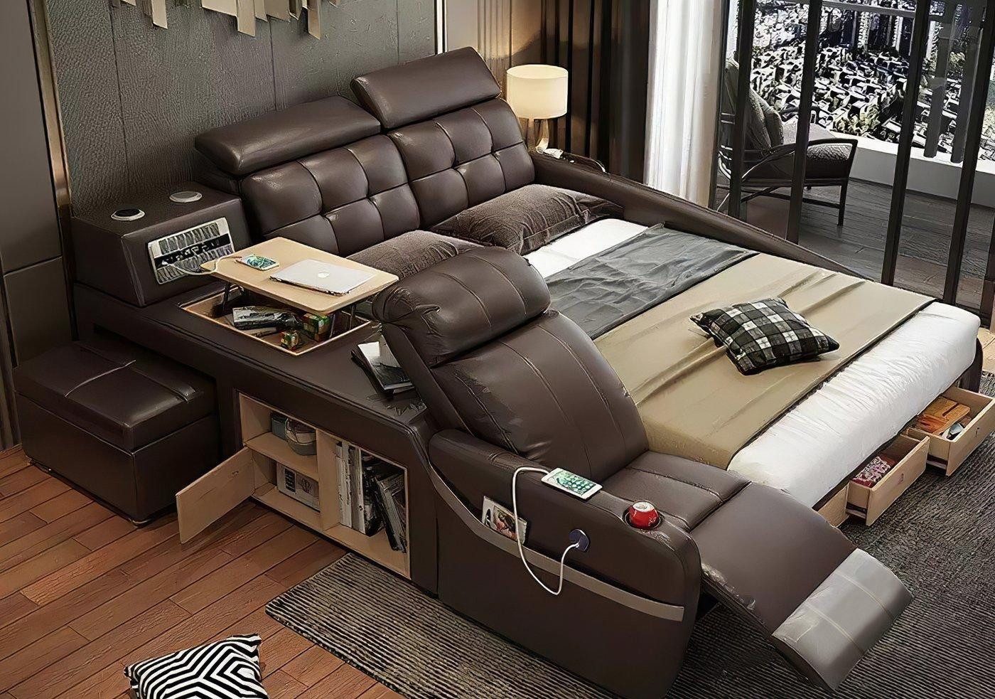 Die Bett Massage Liege Multifunktion vereint Komfort und Funktionalität in einem luxuriösen Design. Mit integrierten Massagefunktionen und einem praktischen USB-Anschluss können Sie sich entspannen und gleichzeitig Ihre Geräte aufladen. Das hochwertige Lederpolster sorgt für ein angenehmes Liegegefühl, während das Regal für zusätzlichen Stauraum sorgt. Diese Bett Massage Liege ist die perfekte Kombination aus Luxus und Bequemlichkeit für Ihr Zuhause.