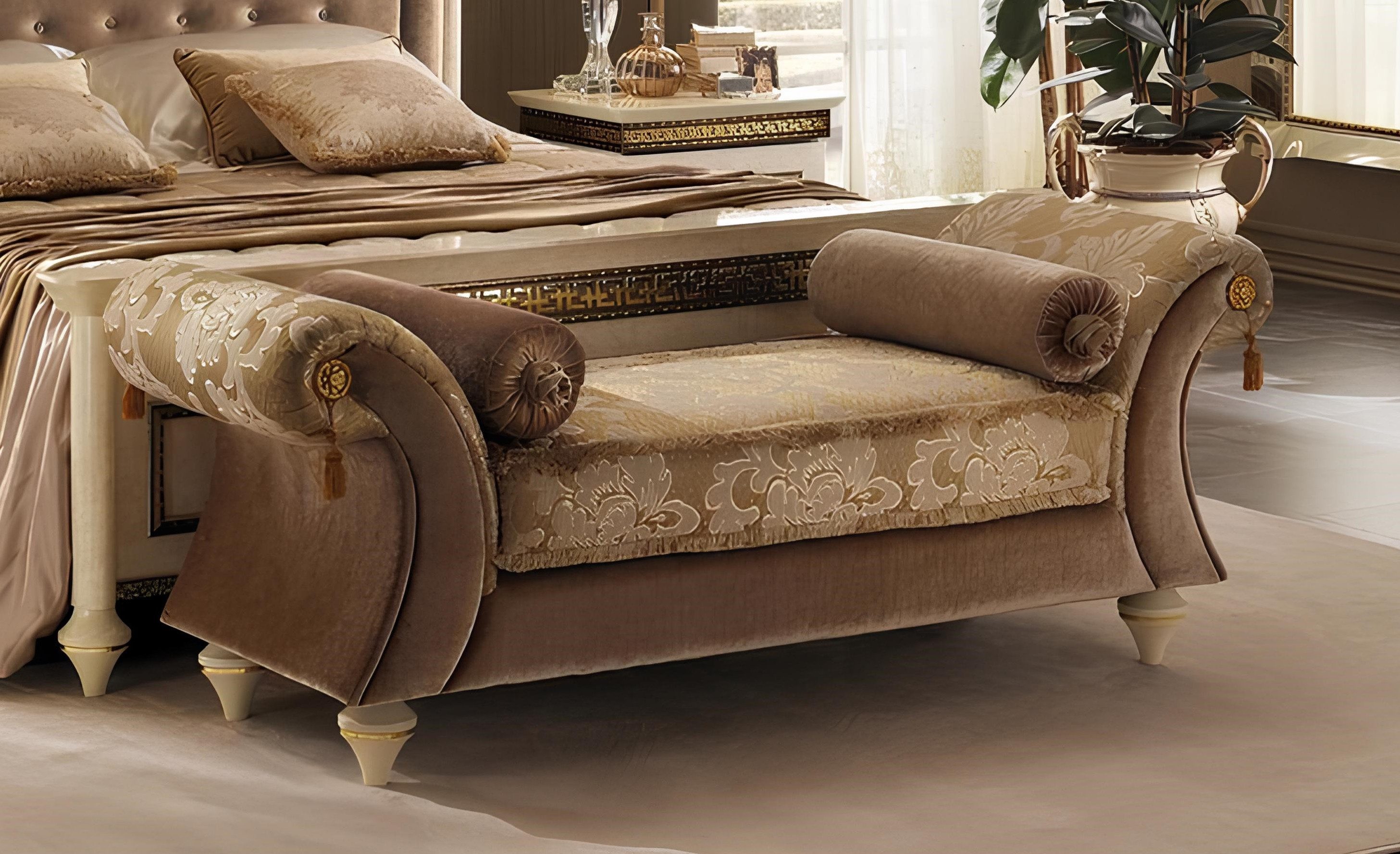 Die Chaiselongue im barocken Stil vereint opulente Eleganz und außergewöhnlichen Komfort. Dieses Möbelstück, das gleichzeitig eine Liege und ein Sofa ist, bietet eine perfekte Mischung aus klassischem Design und modernem Luxus.