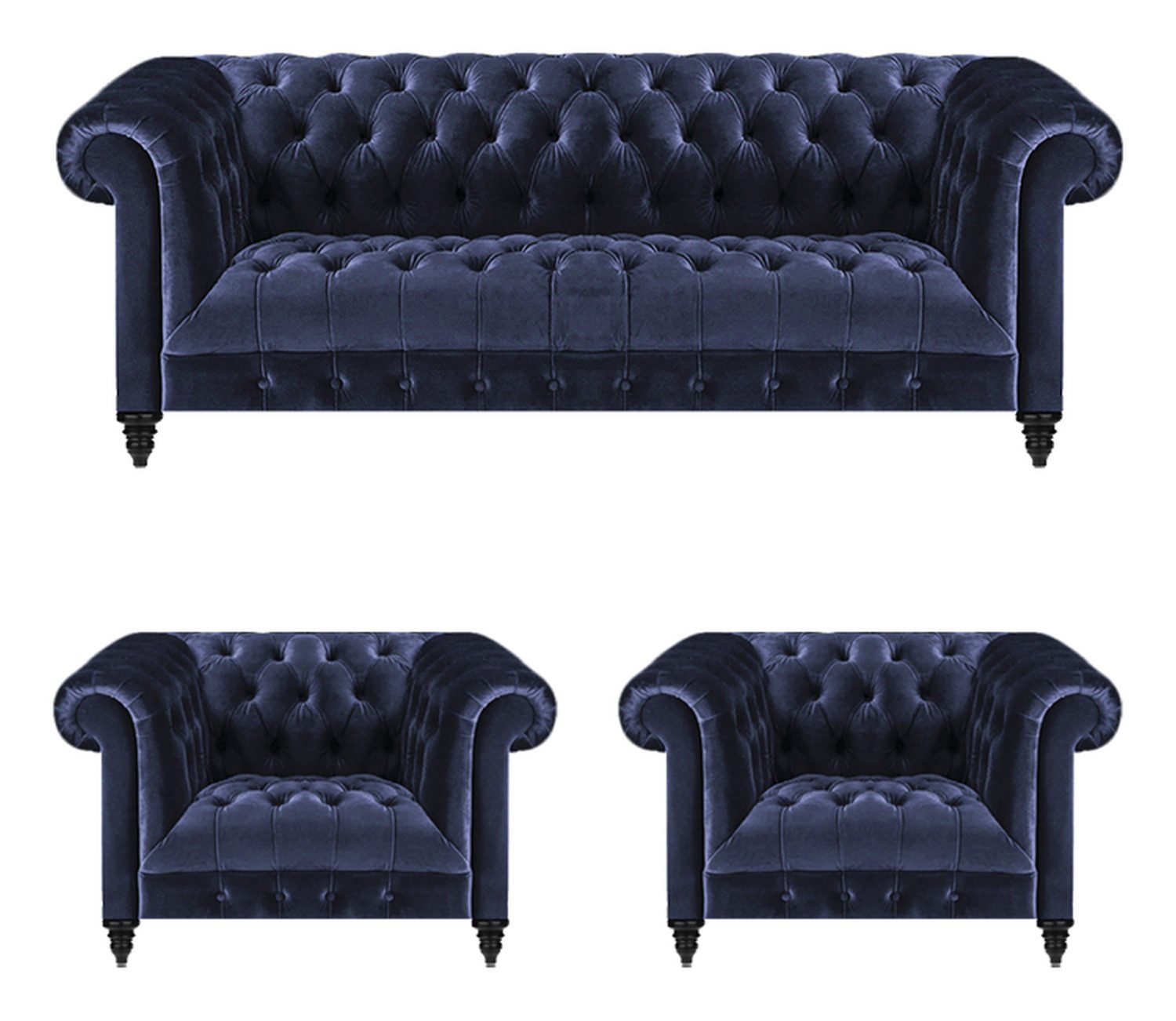 Polstergarnitur 3-teiliges Chesterfield Polstermöbelset für das Wohnzimmer