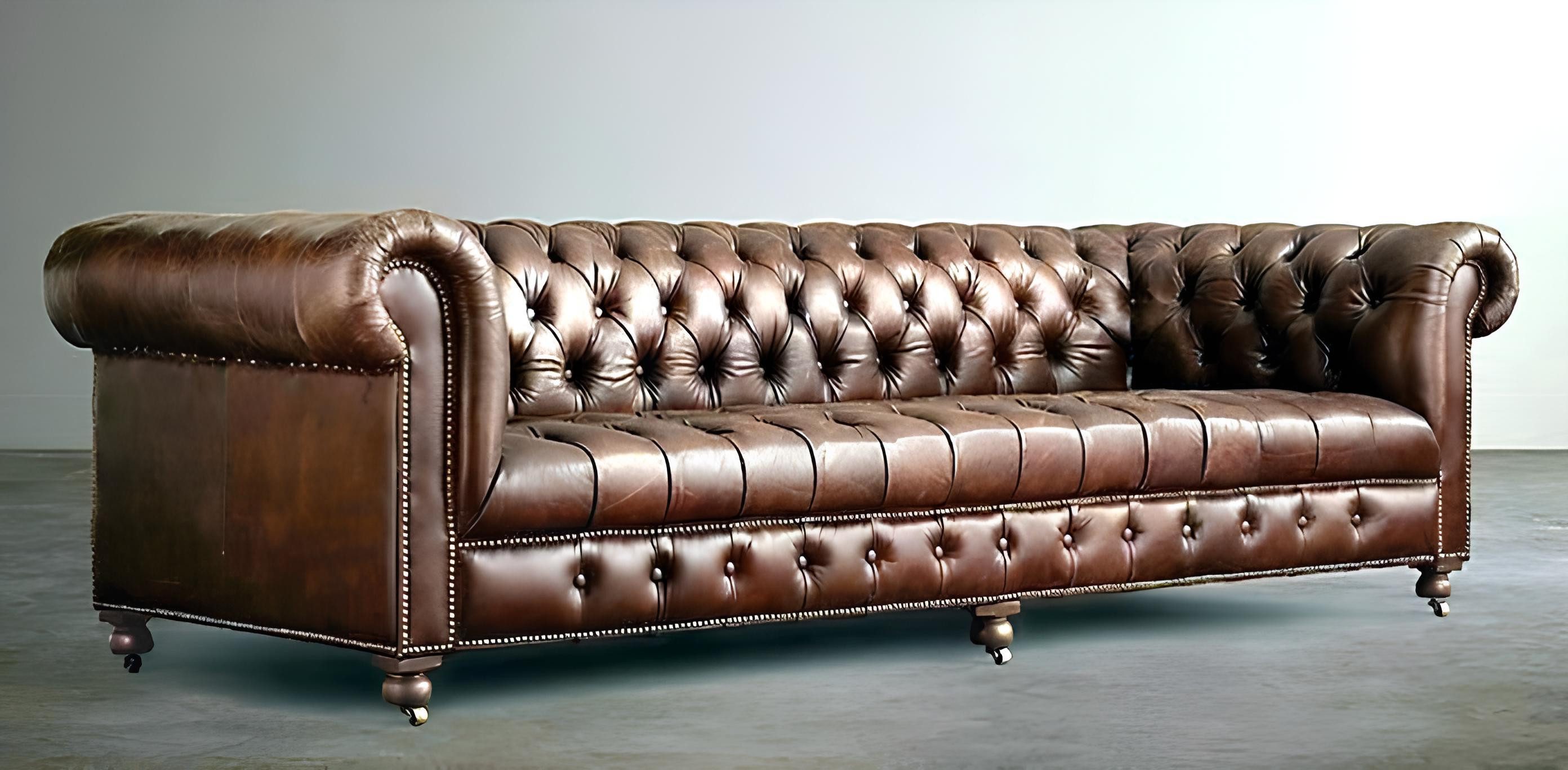 Sofa Chesterfield Viersitzer Polstercouch in antikem Stil aus Leder und