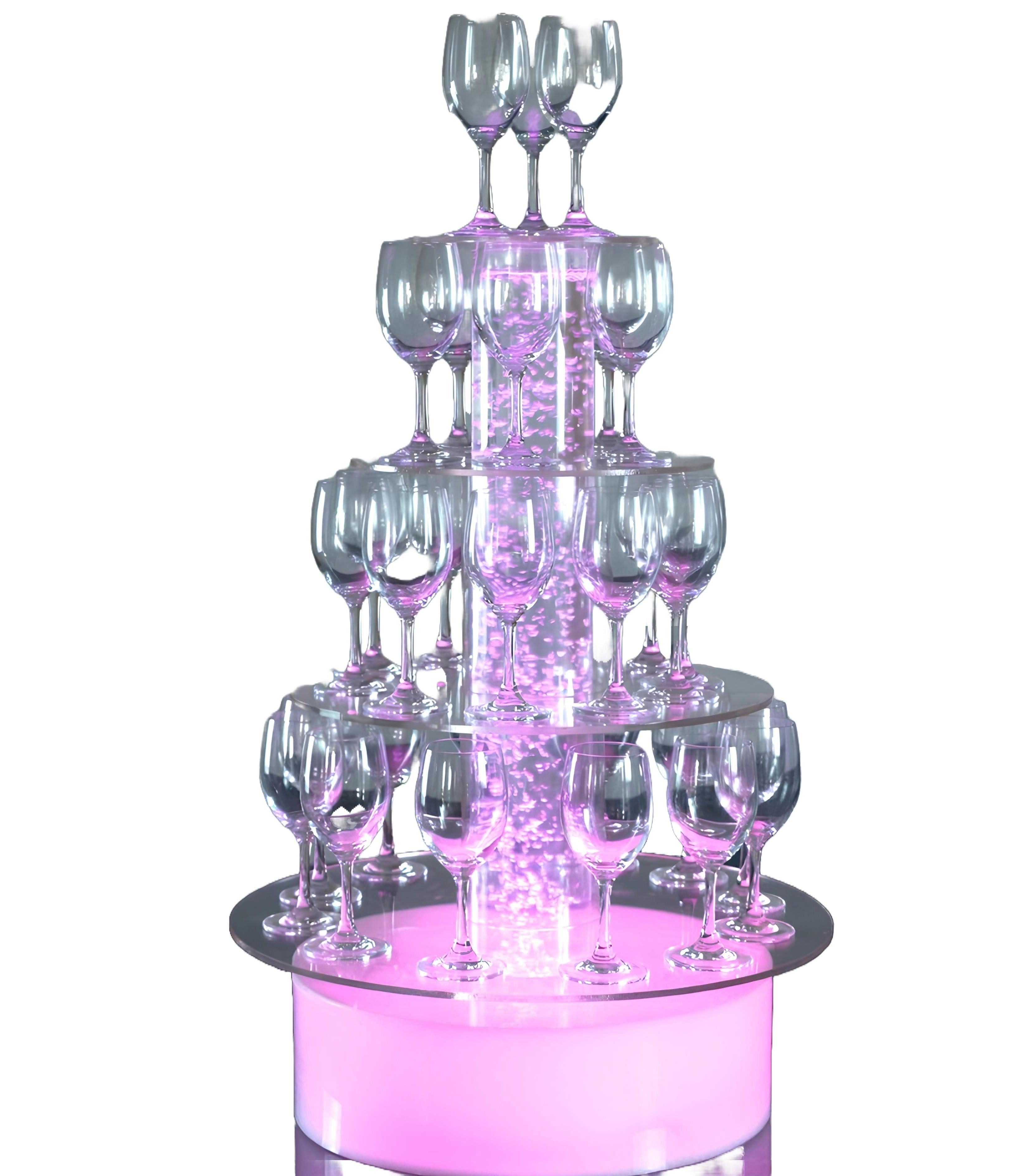 Der Champagne Tower Sekt Turm ist das perfekte Highlight für jede Hochzeit oder Party! Diese beeindruckende Wasser Säule besteht aus beleuchteten Regal Säulen, die für eine elegante und festliche Atmosphäre sorgen. Füllen Sie die Gläser mit prickelndem Sekt und beobachten Sie, wie der Sekt elegant von oben nach unten fließt. Der Sekt Turm ist nicht nur ein Blickfang, sondern auch ein Genuss für die Sinne und wird Ihre Gäste begeistern. Feiern Sie stilvoll und unvergesslich mit diesem einzigartigen Accessoire!