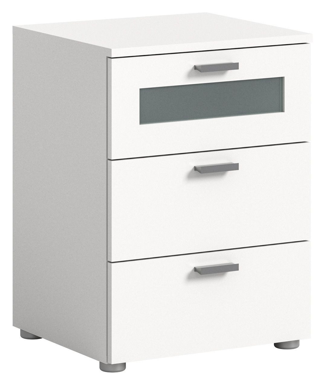 Drei praktische Schubladen mit sanft gleitendem Vollauszug bieten Platz für alles, was Sie griffbereit wissen möchten. Die satinierte Front sorgt für eine edle Optik, während die melaminbeschichtete Oberfläche langlebig und pflegeleicht ist.