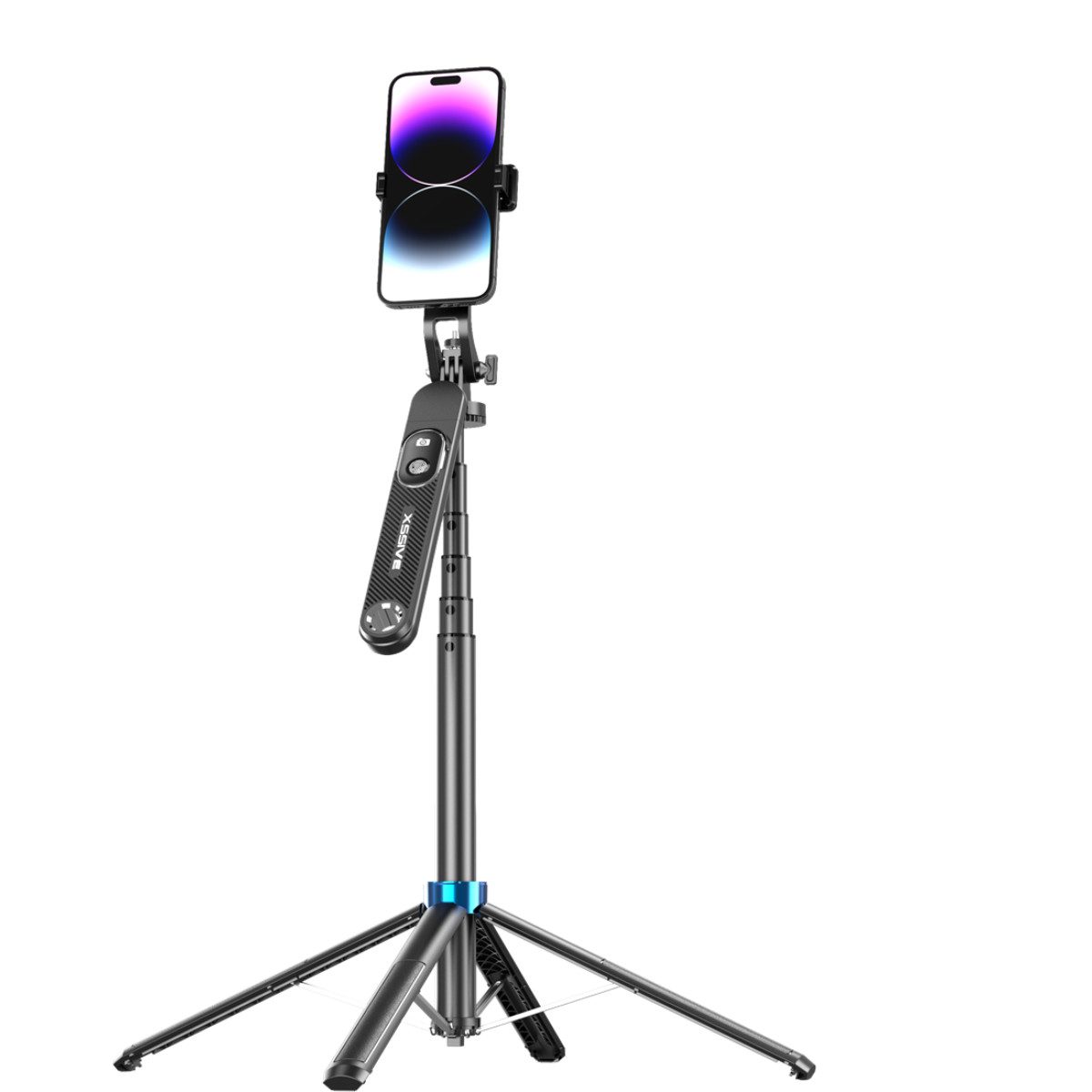 Der Xssive Quadripod Selfie Stick mit 360° Rotation und einer beeindruckenden Длина von bis zu 180 cm ist die ideale Lösung für professionelle Selfies, Vlogs, Gruppenfotos und Videos.