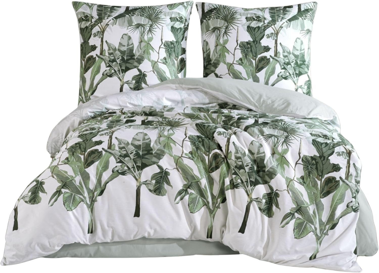 Bringen Sie frische Natürlichkeit in Ihren Schlafbereich mit dem Bettwäsche-Set 155x220 cm 2-teilig. Das stilvolle grüne Blattmuster auf weißem Grund schafft eine entspannte, moderne Atmosphäre mit tropischem Charme.