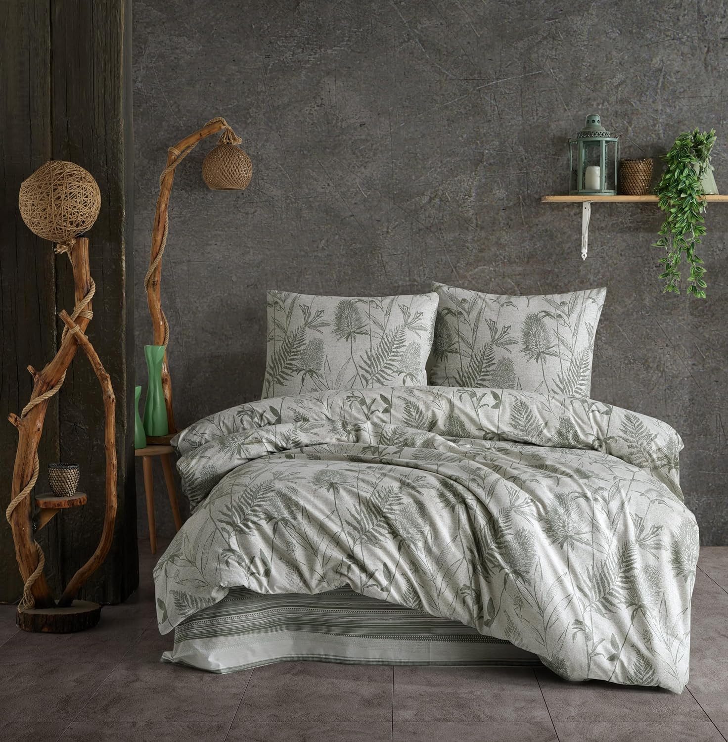 Verleihen Sie Ihrem Schlafzimmer eine entspannte, natürliche Atmosphäre mit diesem hochwertigen 2-teiligen Bettwäsche-Set aus Renforcé-Baumwolle. Das Set besteht aus einem Bettbezug (135x200 cm) und einem Kissenbezug (80x80 cm) und besticht durch ein elegantes Blättermuster in sanften Grüntönen auf hellem Hintergrund – ideal für eine beruhigende und stilvolle Schlafumgebung.