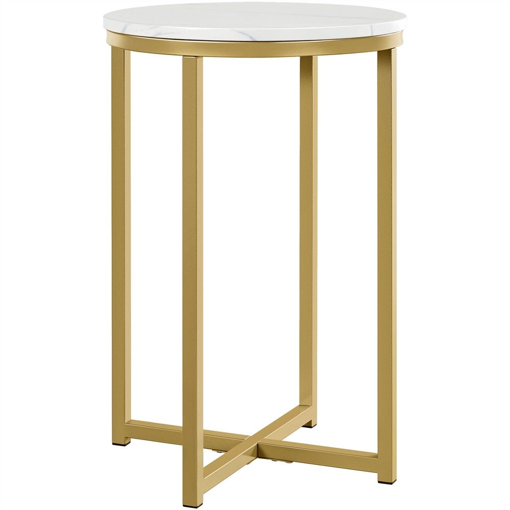 Verleihen Sie Ihrem Raum modernen Luxus mit diesem Beistelltisch im Kunstmarmor-Look! Die Tischplatte aus robusten MDF-Holzplatten ist elegant in Marmoroptik gehalten. Die X-förmigen Stützbeine sorgen für einen minimalistischen Look und hohe Stabilität. Die Tischplatte und die untere Ablage bieten Platz für eine Leselampe, Kaffeetasse, Zimmerpflanze, Vase, Bücher, Fernbedienungen und Dekorationen. Ideal neben Sofa, Sessel, Bett, im Eingangsbereich, oder neben Esstisch und Schreibtisch.