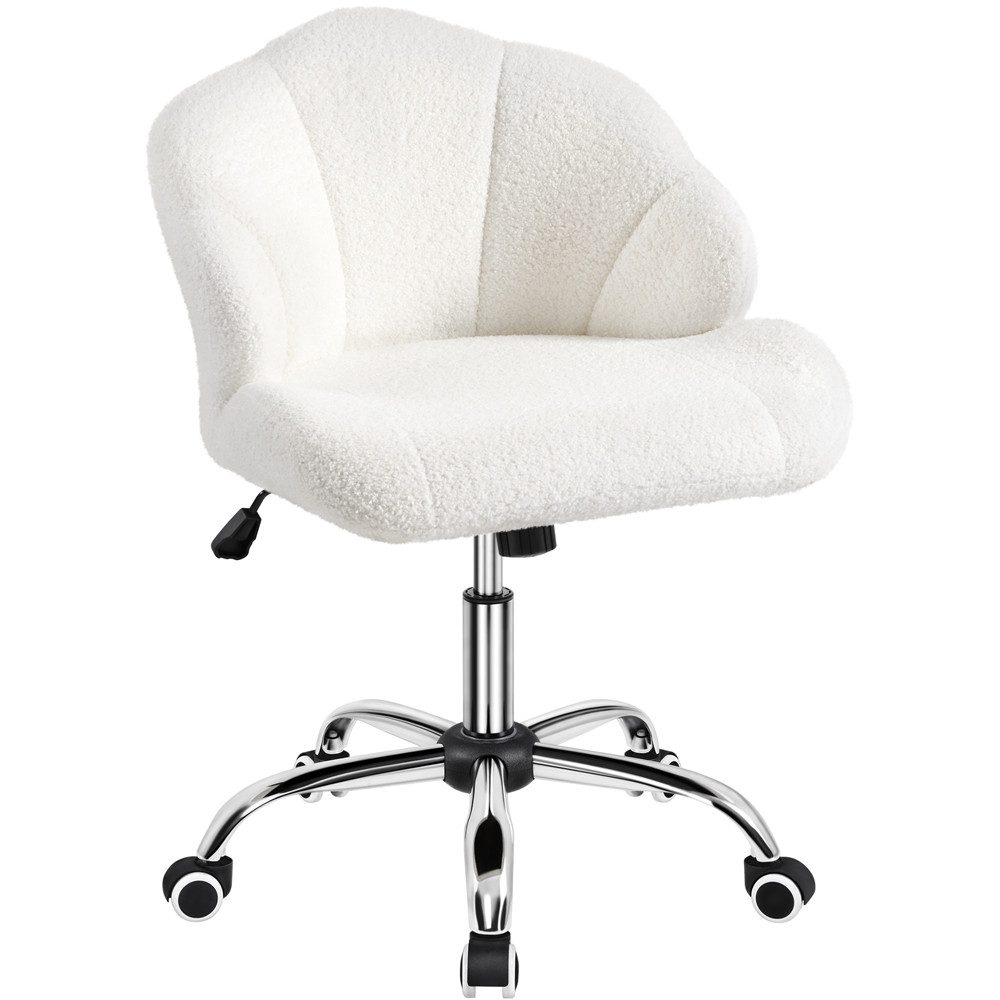Suchen Sie nach einem praktischen und formschönen Drehsessel? Dieser Bürostuhl in Muschelform bietet Ihnen hohen Sitzkomfort bei der Arbeit! Das Design dieses Sitzes ist von Muscheln inspiriert. Diese Form verleiht dem Sessel einen eleganten, ozeanischen Touch und bietet Ihnen eine optimale Unterstützung. Die umlaufende Rückenlehne fördert eine entspannte Sitzposition. Dank der vielseitigen Einstellungsmöglichkeiten passt sich dieser Stuhl zu den verschiedenen Körpertypen und Tischhöhen. Mit dem Hebel unter der Sitzfläche können Sie die Sitzhöhe verstellen, und der Drehknopf ermöglicht die Einstellung des Neigungswinkels der Rückenlehne. Die fünf Rollen bieten flexible Beweglichkeit und sorgen für eine ruhige Arbeitsumgebung. Dieser vielseitige Sessel eignet sich ideal für das Arbeitszimmer, Wohnzimmer, Heimbüro, Schlafzimmer, Empfangsraum, Besprechungsraum und viele weitere Einsatzbereiche.