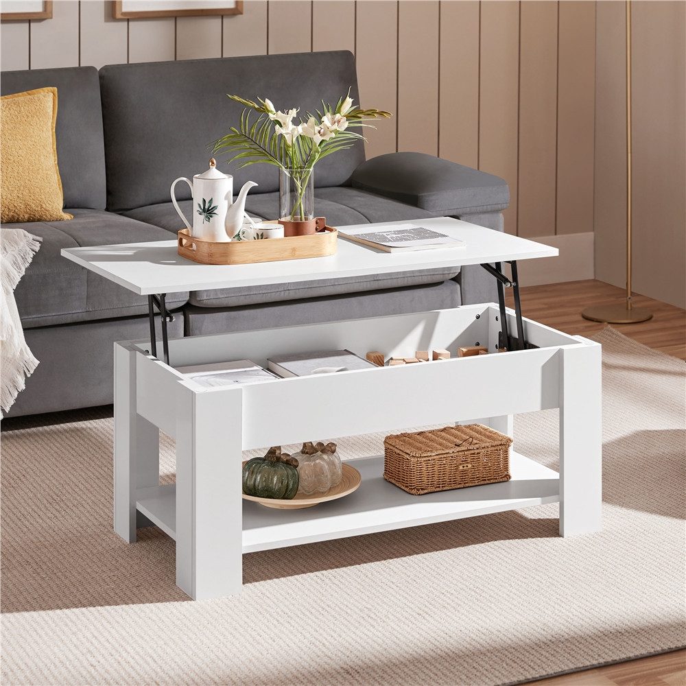 Mit seinem praktischen Lift-Top-Design und dem modernen Look wird dieser Kaffeetisch der Eyecatcher in Ihrem Zuhause sein! Mit der hochklappbaren Tischplatte kann dieser Couchtisch temporär als Arbeits- oder Esstisch verwendet werden, ohne sich nach vorne beugen zu müssen. Das versteckte Ablagefach unter der Tischplatte und die offene Ablage an der Unterseite bieten Sie genügenden Stauraum für die Alltagsgegenstände. Der Tisch besteht aus robusten MDF-Holzplatten, die für eine lange Lebensdauer sorgen. Dieser höhenverstellbare Kaffeetisch sorgt für Ordnung in Ihrem Wohnzimmer, Arbeitszimmer oder Büro.