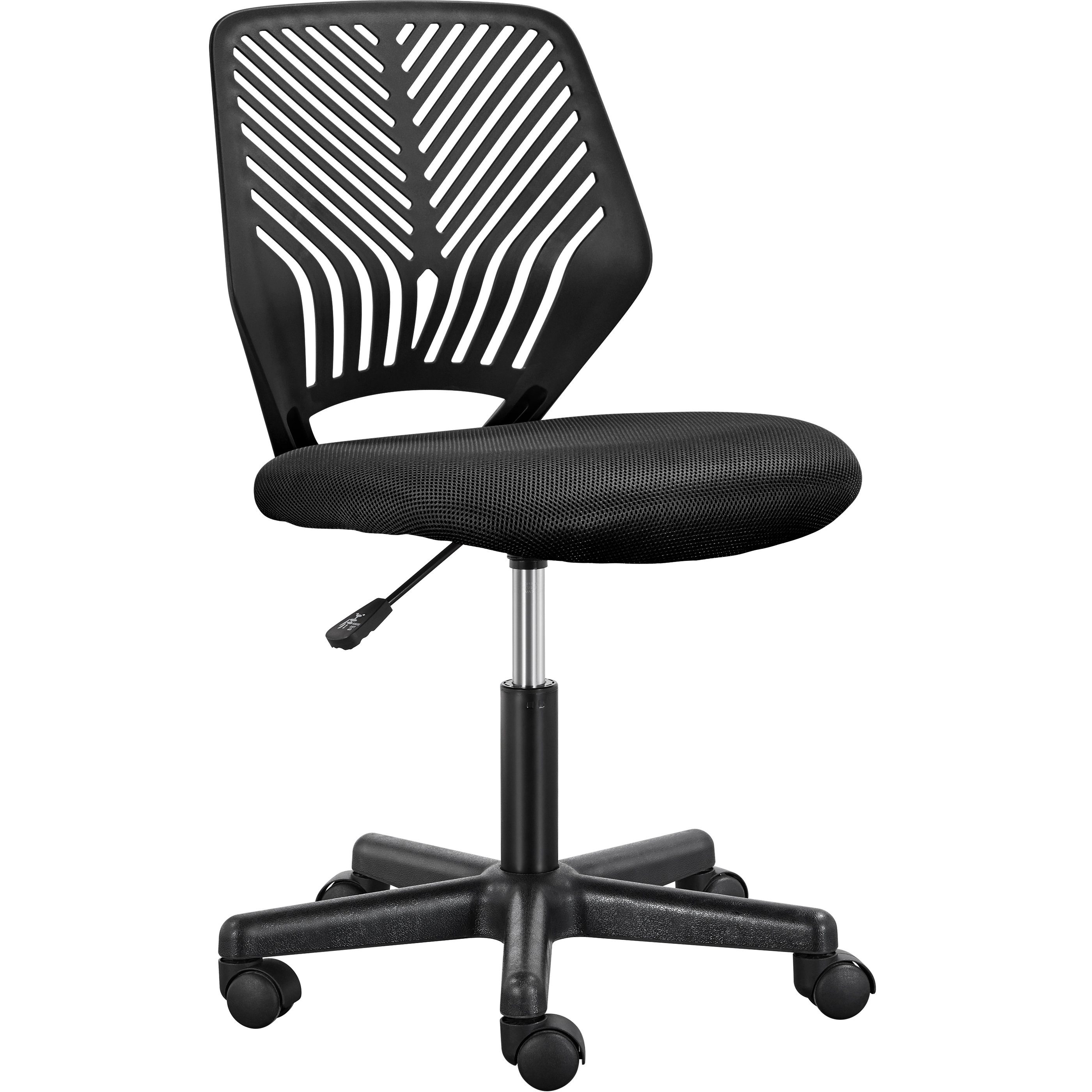 Unser Bürostuhl ist aus Metall, Polyester und Kunststoff gefertigt und verfügt über eine strapazierfähige Stuhlbasis, sodass der Schreibtischstuhl mit maximal bis zu 136 kg belastet werden kann. Das Armlehne-lose Design bietet Ihnen mehr Bewegungsfreiheit und eine bessere Anpassbarkeit. Durch das einfache Design in einer klassischen Farbe fügt sich der Bürostuhl optimal in Ihren Einrichtungsstil ein und verleiht Ihrer Wohnung einen modernen Touch.
