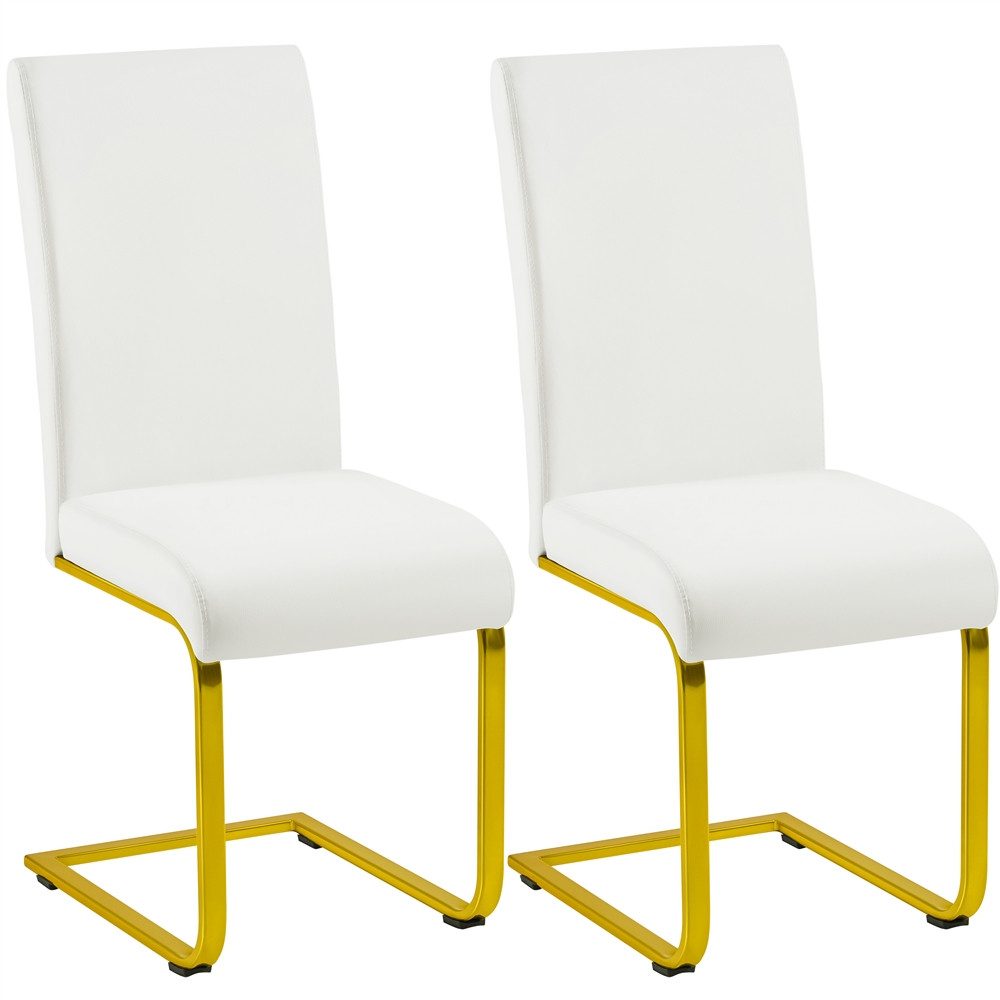 Unsere zwei Küchenstühle ist aus Kunstleder, Schaumstoff und Metall gefertigt. Jeder Küchenstuhl kann maximal mit bis zu 135 kg belastet werden. .Die weiche Schaumstoffpolsterung bietet Ihnen einen optimalen Sitzkomfort. Jeder Esszimmerstuhl ist zudem mit 4 Fußpolster für einen idealen Bodenschutz ausgestattet. Dank der Sitzfläche aus Kunstleder und des Metallrahmens ist unser Küchenstühle-Set einfach und leicht zu reinigen.