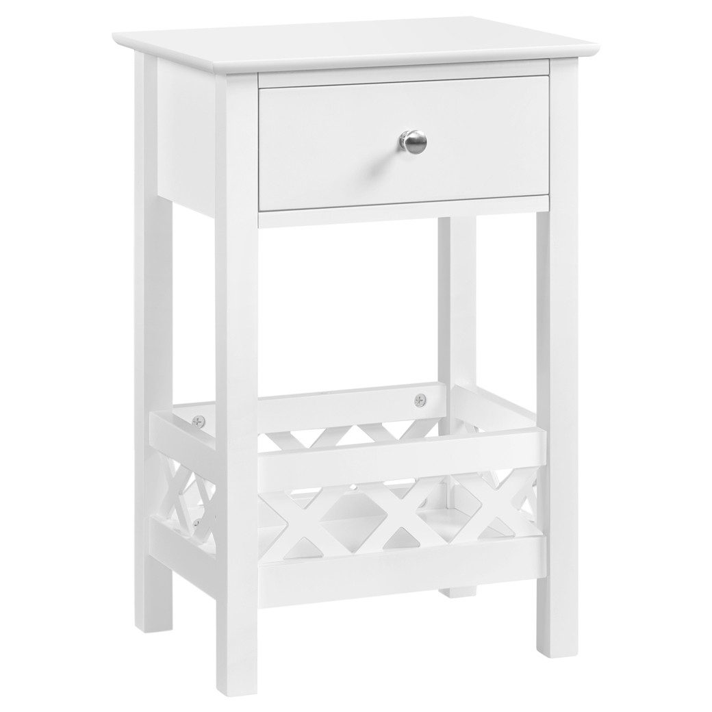 Suchen Sie noch einen praktischen und platzsparenden Beistelltisch? Werfen Sie einen Blick auf diesen Tisch mit dem Korb! Dieser 2-Ebenen-Beistelltisch verfügt über eine Schublade und eine untere Ablage mit Gitter und damit bietet den versteckten und offenen Stauraum. In der Schublade können Sie die persönlichen Artikel aufbewahren und im Korb können Sie die Bücher, Zeitschriften, Dekos stellen. Dank des Gitters sind die Bücher sichtbar und fallen nicht heraus. Auf der Tischplatte können Sie die Zimmerpflanze, Lampen oder Fotorahmen legen. Mit der kompakten Размер eignet dieser Tisch optimal für die kleinen Räume und dient als Nachttisch, Sofatisch. Flurtisch, Lampentisch und dergleichen.