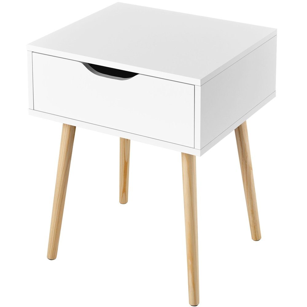 Gestalten Sie Ihr modernes Wohnzimmer mit diesem kompakten Beistelltisch! Die schlichten Linien und die hellen Farben verleihen dem Raum einem schicken und eleganten Charme, die sich optimal an Ihre Wohnstile anpassen lässt. Der Beistelltisch besteht aus robusten MDF-Holzplatten, Spanplatten und Massivholz, die für den langfristigen Gebrauch sorgen. Mit der Schublade bietet der Endtisch Stauraum für Ihre Brille, Bücher, Handcreme, Fernbedienung und weitere Dinge. Sie können auch Vasen mit Blumen und Fotorahmen auf dem Desktop setzen. Neben dem Wohnzimmer kann dieser Beistelltisch auch als Beistelltisch im Büro, Nachttisch im Schlafzimmer und Telefontisch im Tagungsraum und dergleichen dienen.