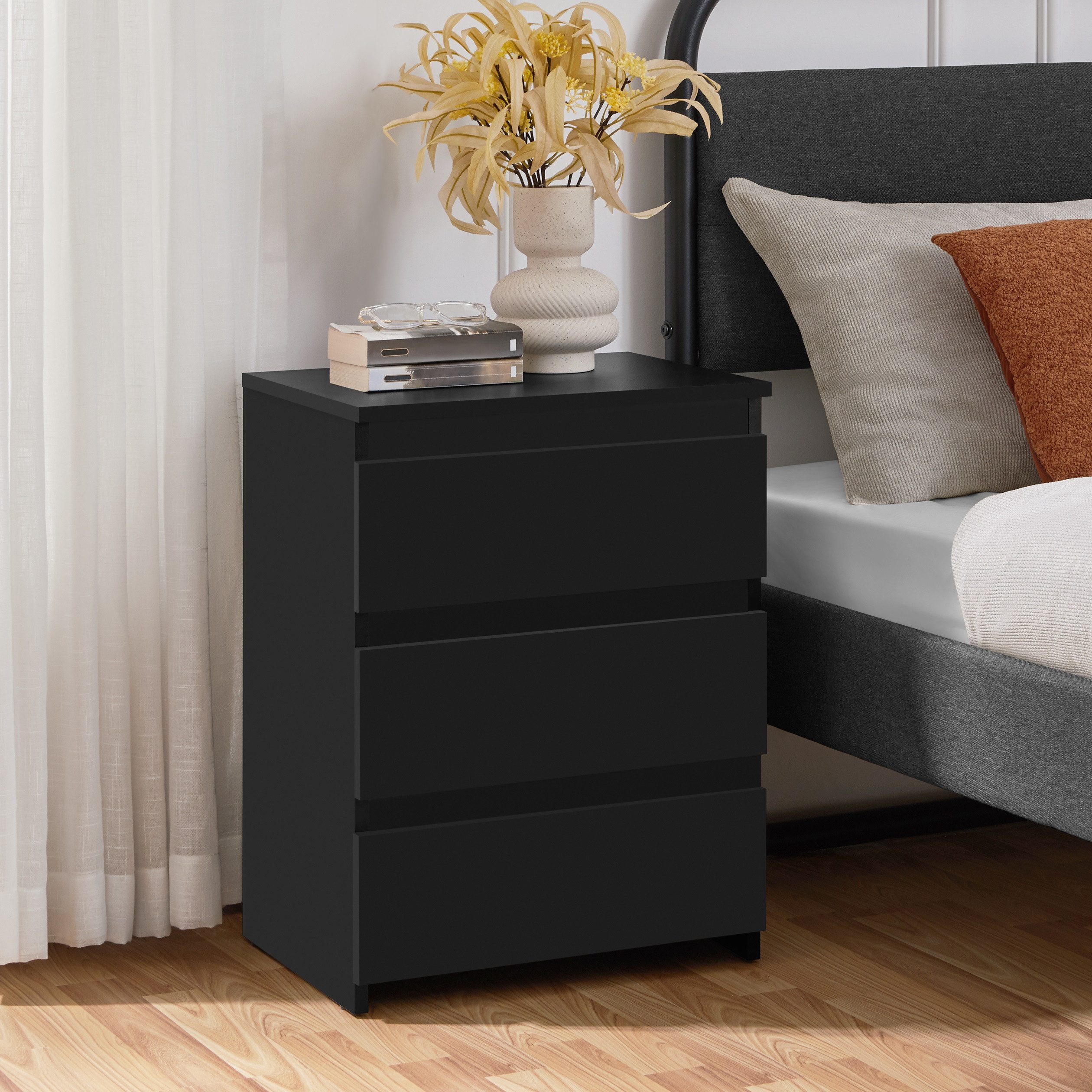 Dieser kostengünstige Nachttisch ermöglicht es Ihnen, Ihren Wohnraum übersichtlich und elegant zu gestalten. Konstruiert aus hochwertigen und unbedenklichen MDF-Platten und versehen mit drei geräumigen Aufbewahrungsschubladen, eignet er sich hervorragend für den Gebrauch im eigenen Heim und am Arbeitsplatz. Im klassischen Design mit klaren Linien in schwarzem oder weißem Finish fügt sich unser Nachttisch mit drei Schubladen optimal in Ihren Wohnstil ein. Wenn Sie auf der Suche nach einem kostengünstigen Nachtschränkchen sind, wird Sie dieser Nachttisch sicher nicht enttäuschen und Ihnen lange Freude bereiten.