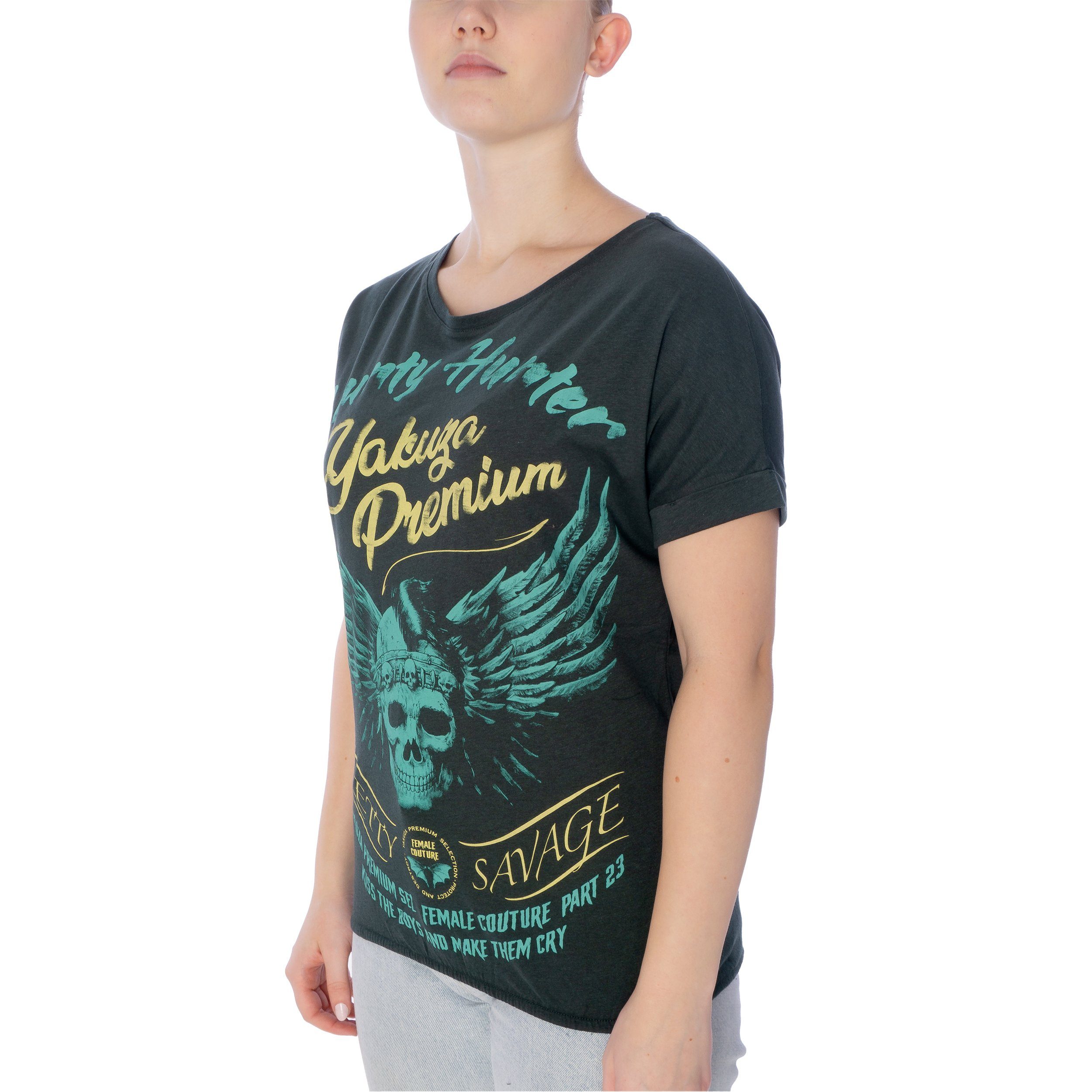 T-Shirt mit Rundhalsausschnitt "Yakuza" Logo-Print auf der Vorderseite "Yakuza" Logo-Print auf der Rückseite locker geschnitten mit Gummizug Material: 80% Baumwolle, 20% Polyester