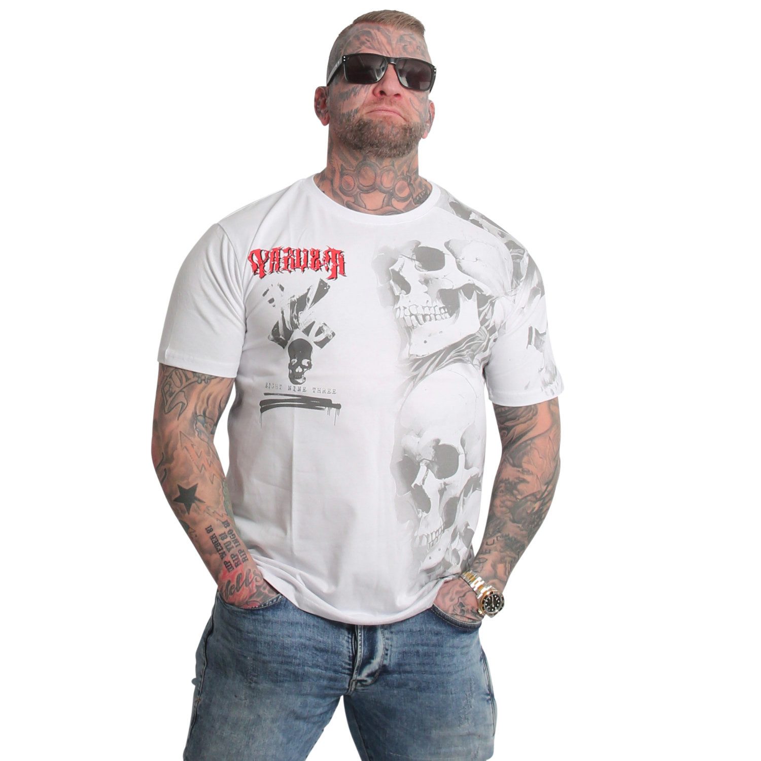 YAKUZA SKULL AWAKENING T-Shirt für Herren. Dieses Shirt ist das Must-Have dieser Saison und dein neuer perfekter Begleiter. Es präsentiert sich in lockerer Passform - hier trifft Komfort auf Coolness. Das Shirt wird mit geripptem Rundhalsausschnitt, Vintage-Prints und einem Yakuza-Logoetikett an der Seitennaht vervollständigt. Bitte beachte unsere Waschanleitung. Das Model ist 1,82m groß und trägt eine XL.