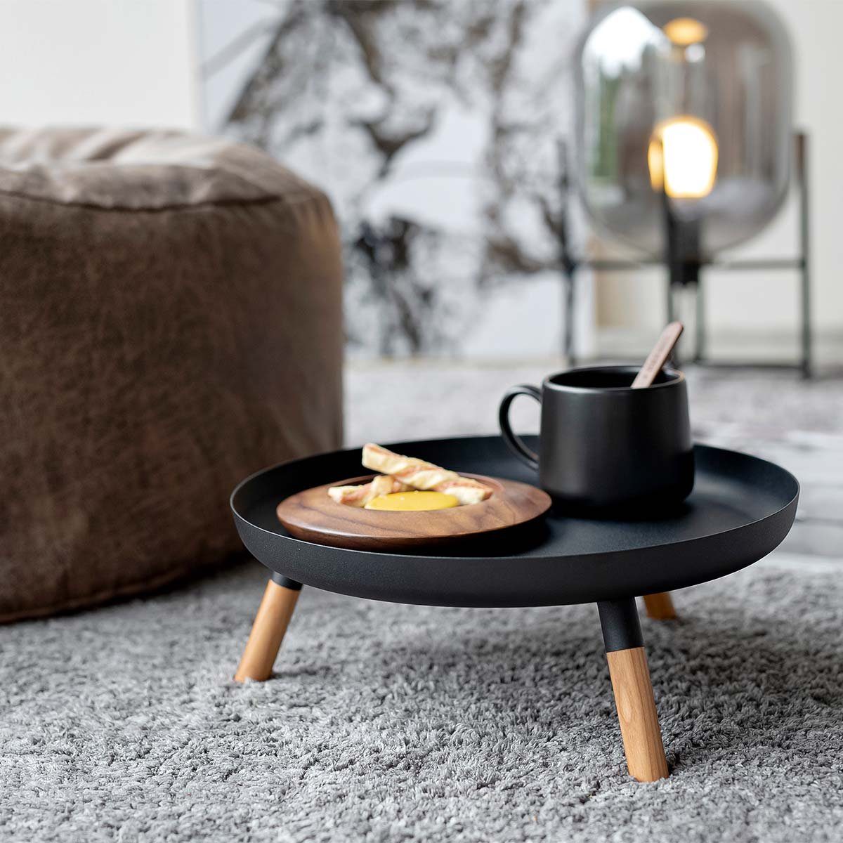 Der Yamazaki Beistelltisch in schwarz ist die perfekte Ergänzung für Ihre Wohnung! Dank seiner flachen Ausführung von nur 13 cm Höhe ist der Beistelltisch ideal als kompakte Ablagefläche oder dekorative Schale für Topfpflanzen, Deko und Obst. Darüber hinaus können Sie ihn auch als praktischen Beistelltisch verwenden. Der Yamazaki Beistelltisch ist aus Metall gefertigt und wird von drei Holzbeinen getragen. Dank dieser Kombination ist er sehr stabil und langlebig. Jetzt den Yamazaki Beistelltisch in schwarz bestellen und in Ihrer Wohnung stilvolles Allroundtalent nutzen!