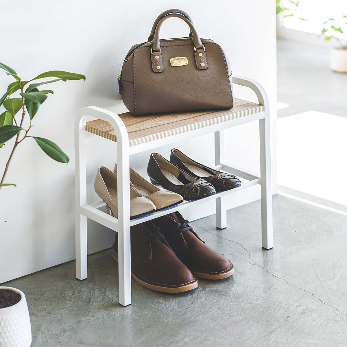 Schuhregal weiß klein mit Ablage für Tasche. Das kompakte Schuhregal von YAMAZAKI ist ideal für die Aufbewahrung von bis zu 2 Paar Schuhen. Die stabile Metallausführung sorgt für Langlebigkeit und die Holz-Ablagefläche rundet das Design stilvoll ab. Das minimalistische Design ist ideal für alle, die bewusst einen reduzierten Look in ihrer Einrichtung anstreben.