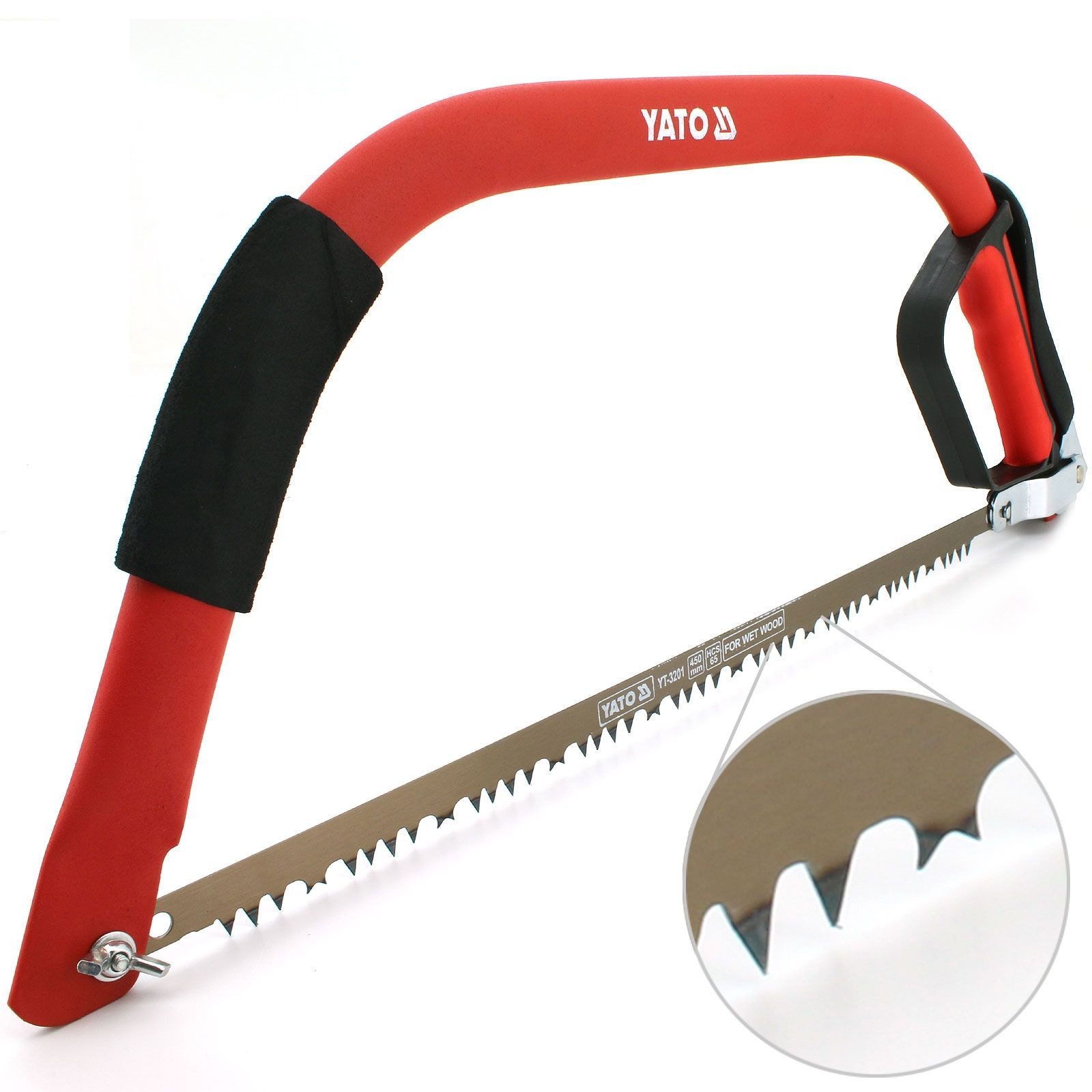 Hochwertige Bügel mit einem ergonomischen Kunststoff Griff und einer Gesamtlänge von 550 mm zum Sägen von Holz und anderen Materialien. Das Sägeblatt hat eine Длина von 450 mm. Ideal für den schnellen Einsatz auf der Baustelle, Garten usw.